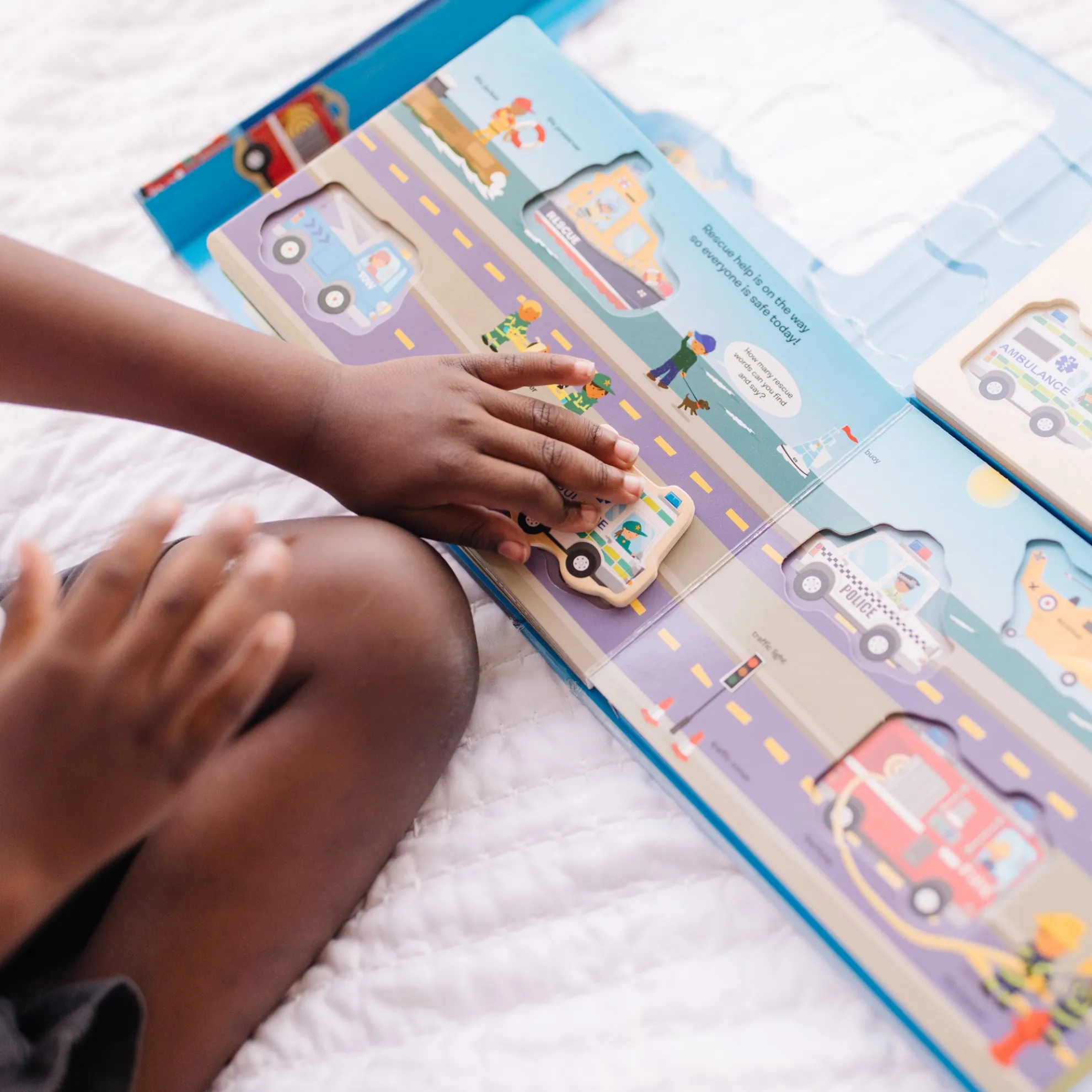 - Read and play with this rescue vehicle storybook with attached wooden puzzle