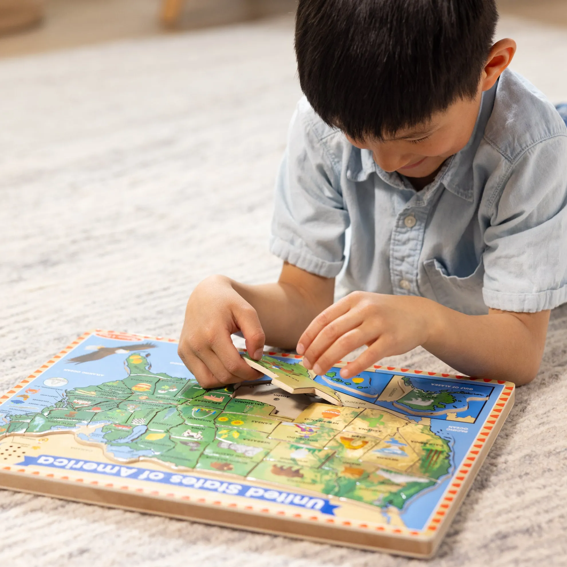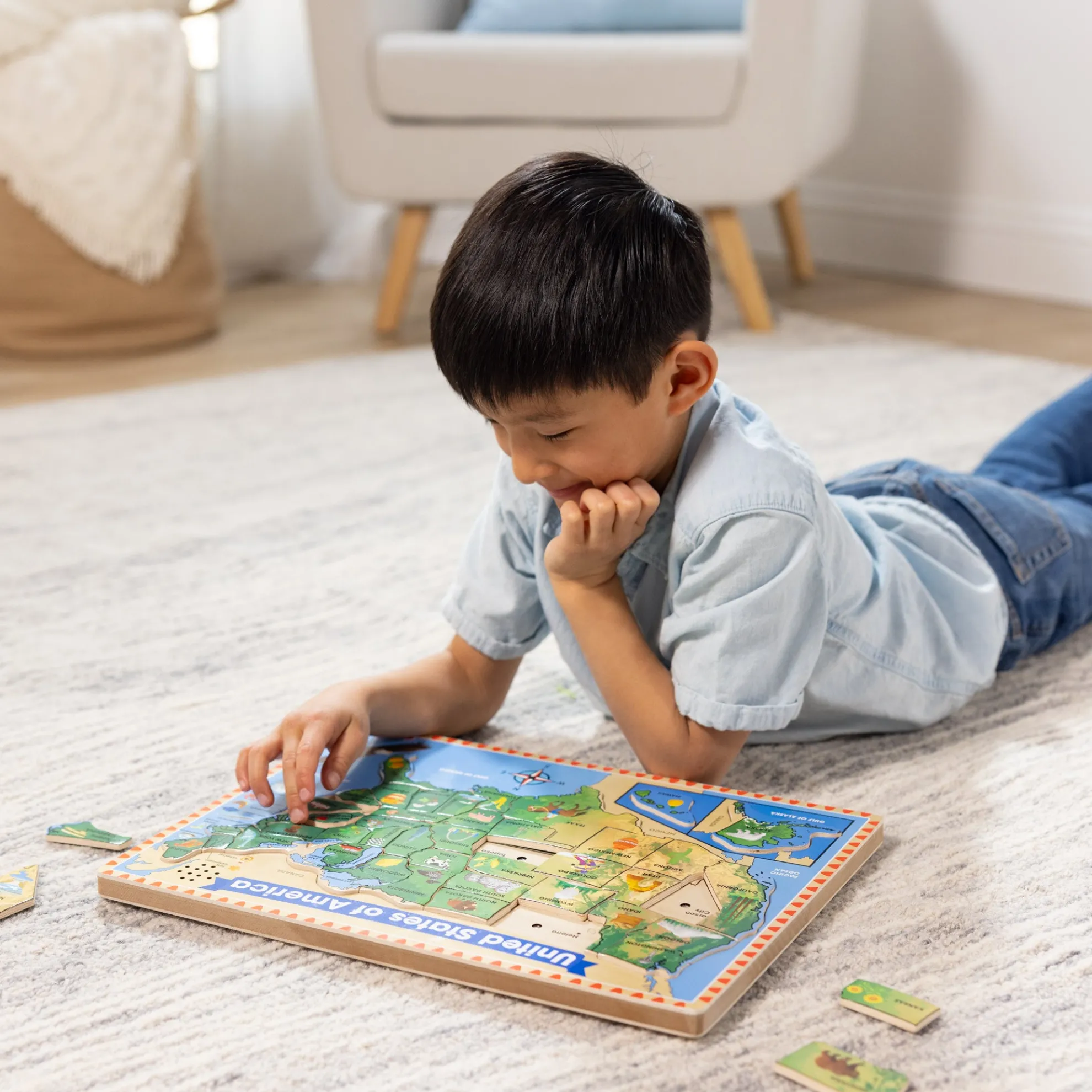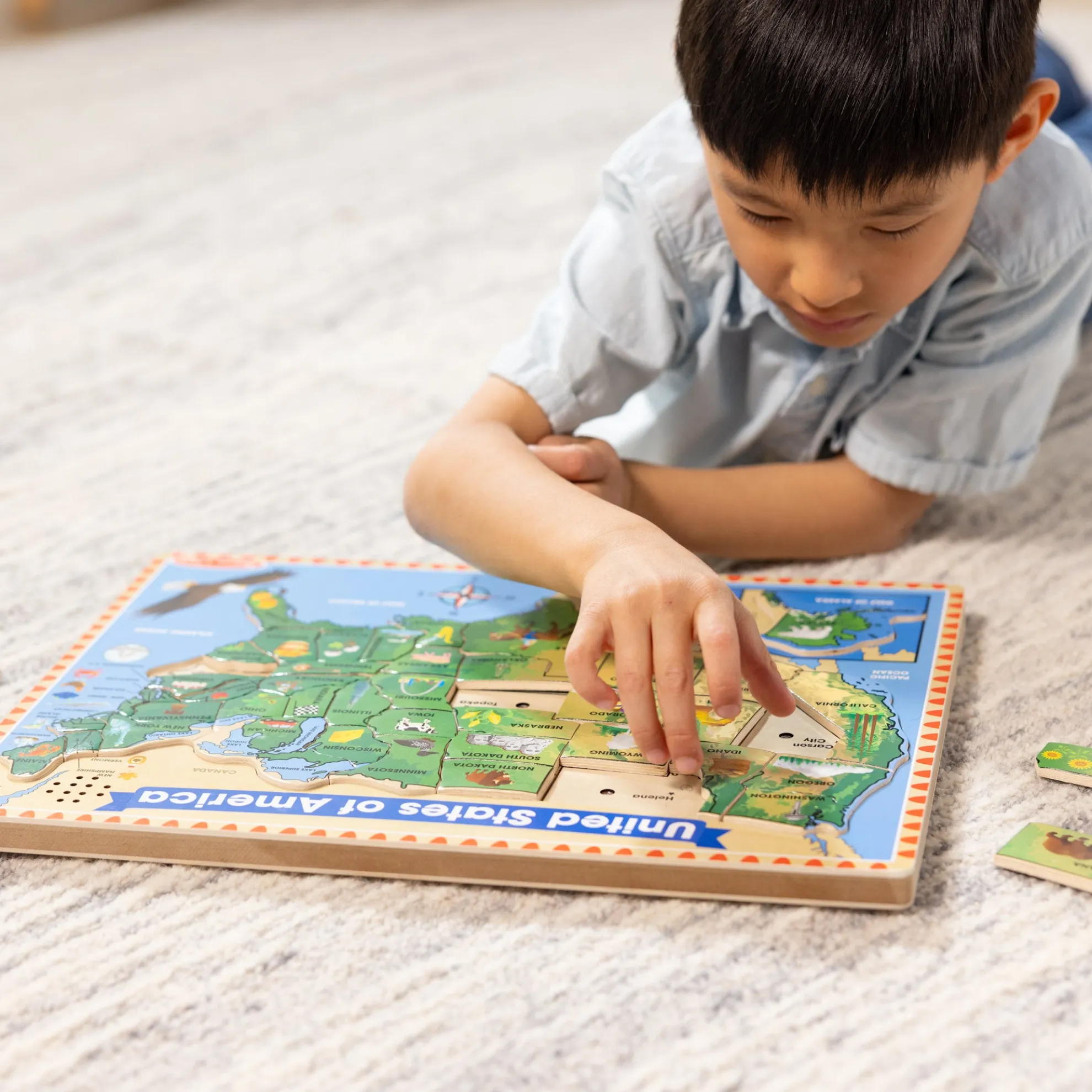 - Wooden sound puzzle helps kids learn about the 50 states and their capitals