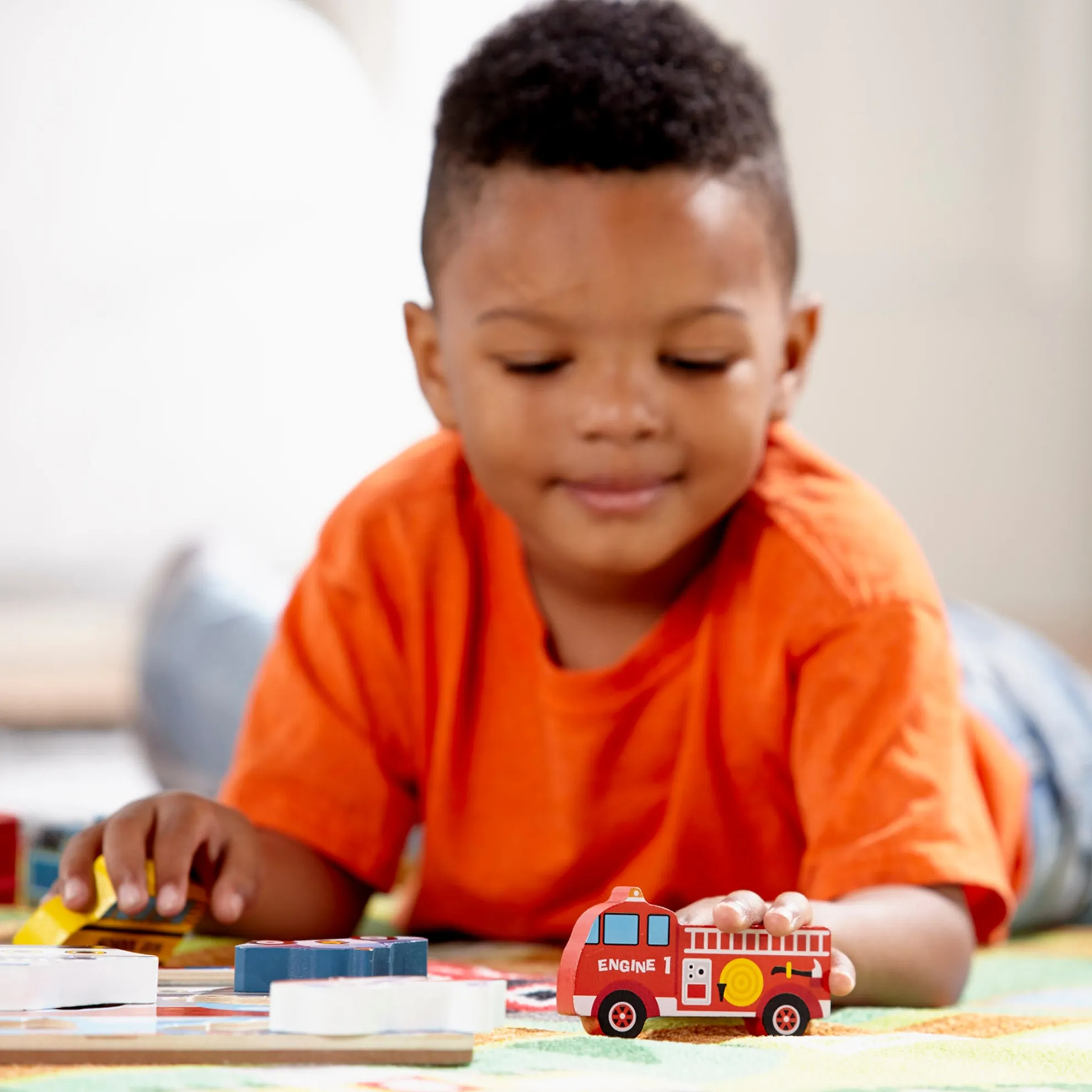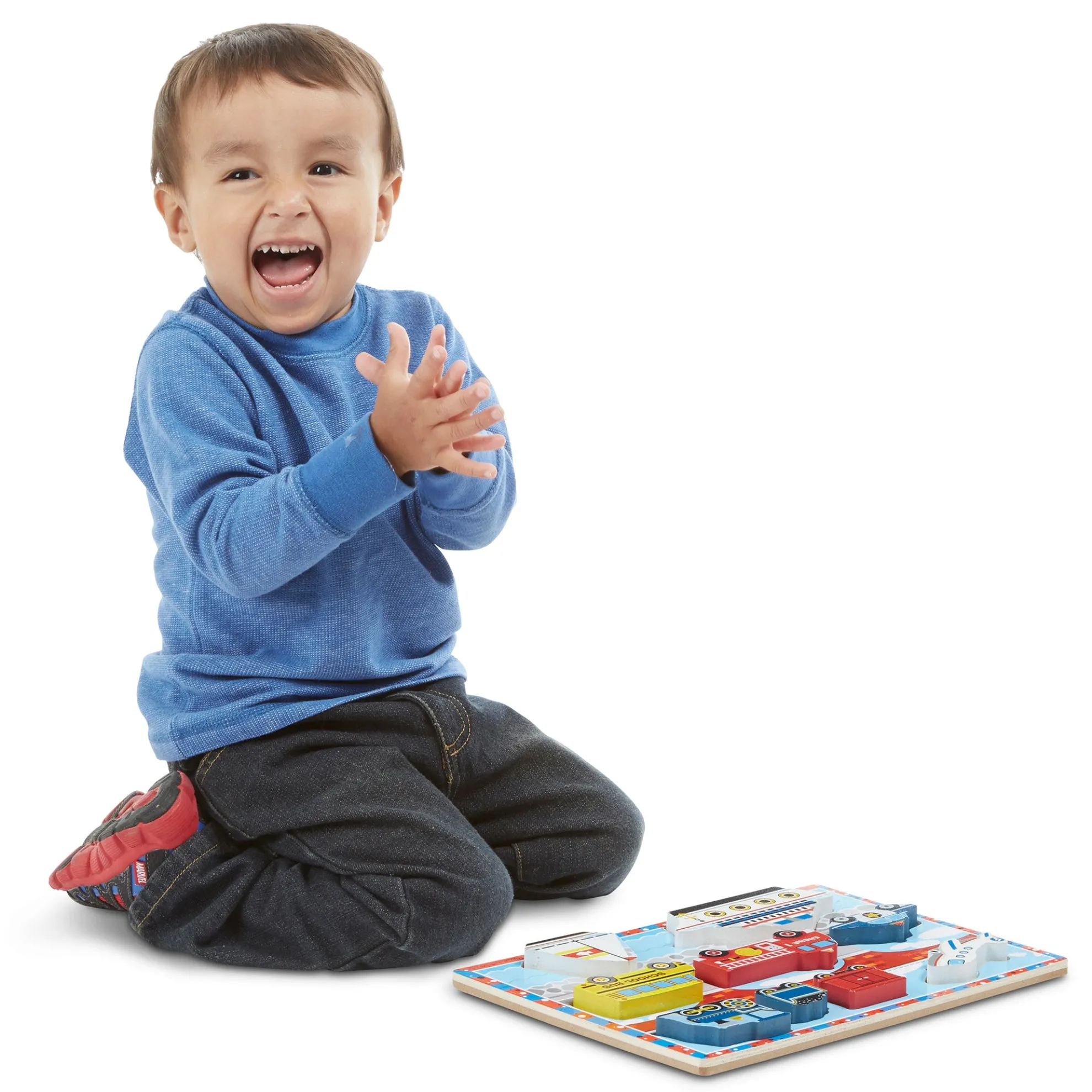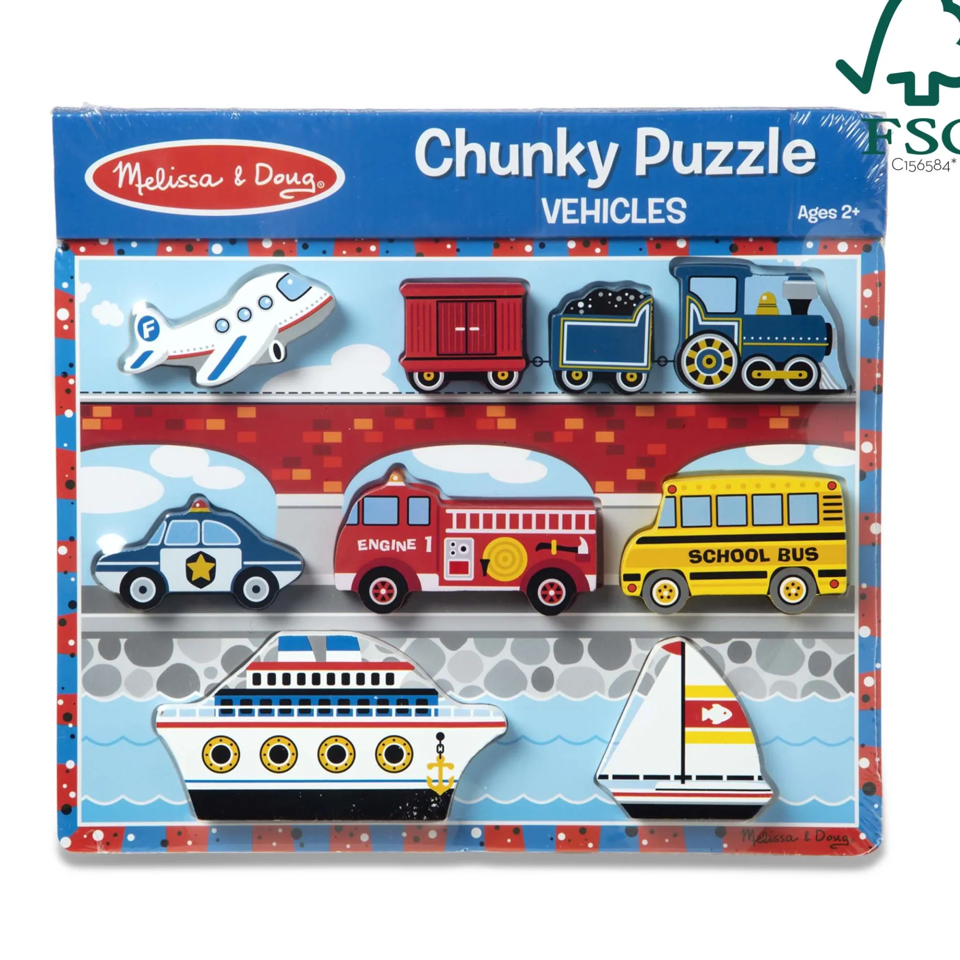 On the road, on the rails, by sea or by air, imaginations travel far and wide with this extra-thick wooden puzzle. Featuring nine easy-grasp, chunky vehicle pieces that can stand upright for pretend play. Each vehicle has a full-color, matching picture underneath. Encourages hand-eye, fine motor and creative expression skills. This product is certified by the Forest Stewardship Council. FSC certification ensures that products come from responsibly managed forests that provide environmental, social, and economic benefits, and that forests are protected for future generations. Please note that FSC certification applies to new inventory only (FSC C156584).