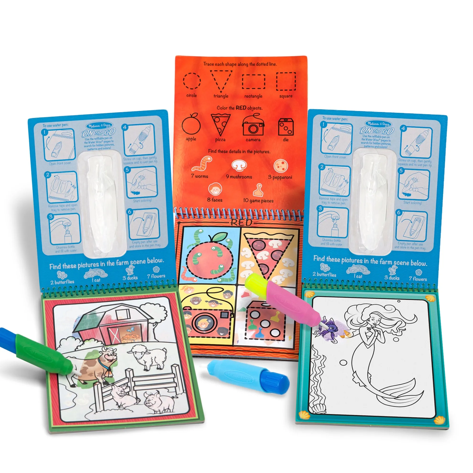 - Three water reveal activity books with water pen in each