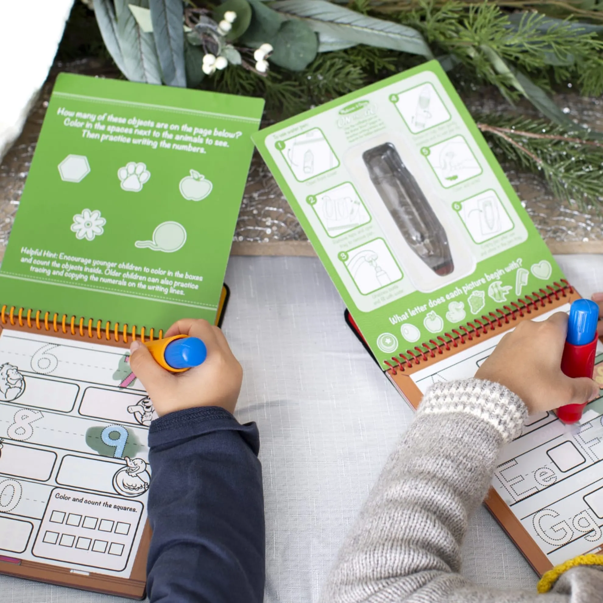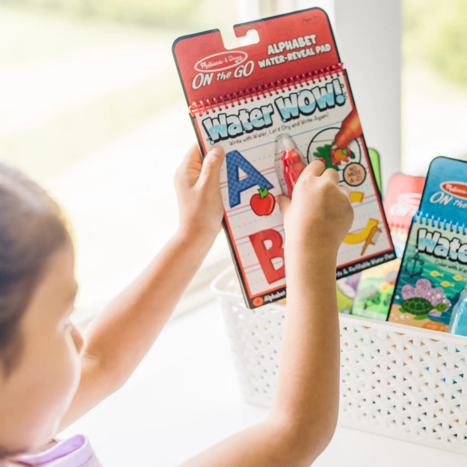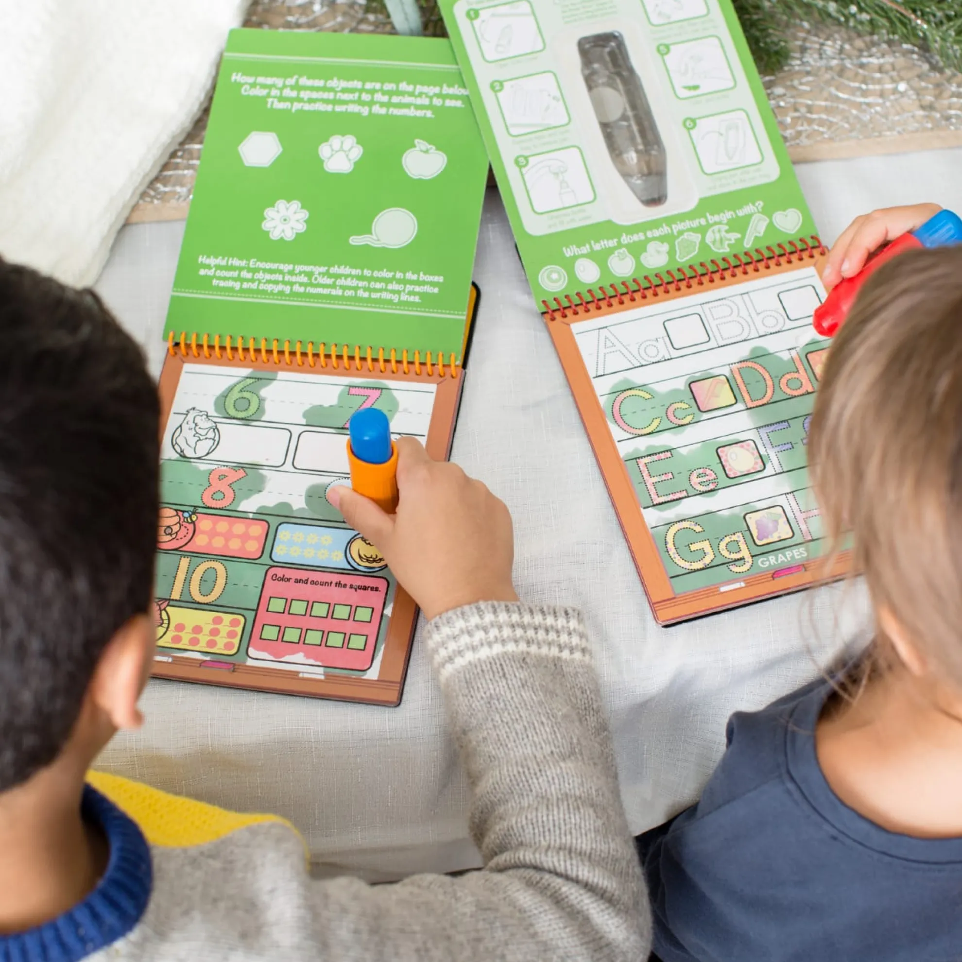 No-mess painting for kids! This exciting paint-with-water coloring book set includes three pads, each with four reusable pages and a refillable water pen. Simply use the pen to color in each scene–details and vibrant color appear with every stroke! Then let the page dry to erase the pictures and fill it in again and again. The chunky-sized water pen is easy for kids to hold and stores neatly right in the front cover, so Water Wow books make ideal travel activity books and travel toys for kids!