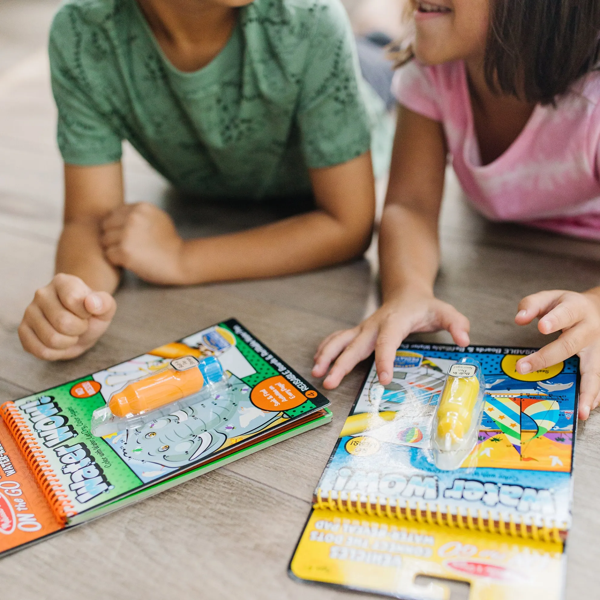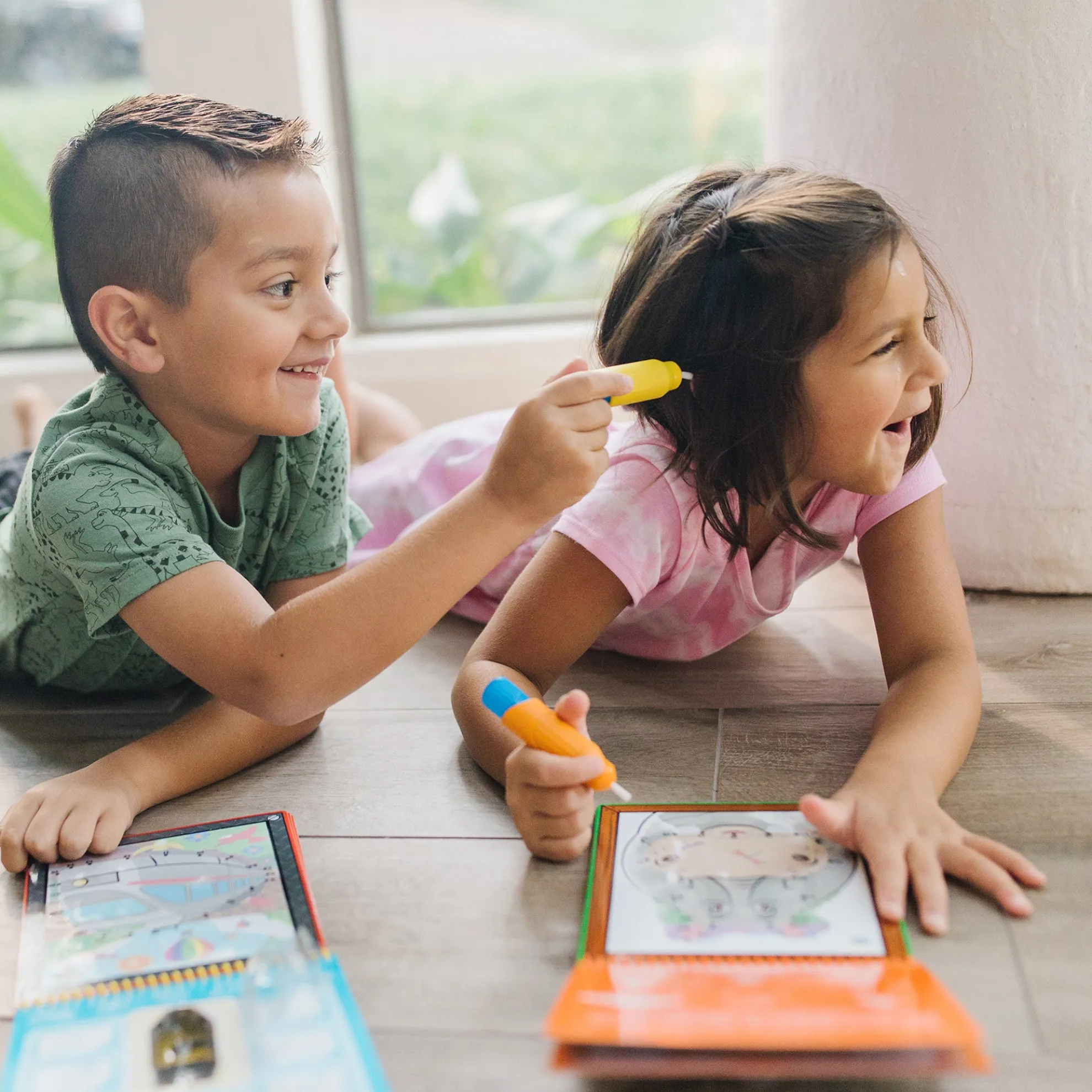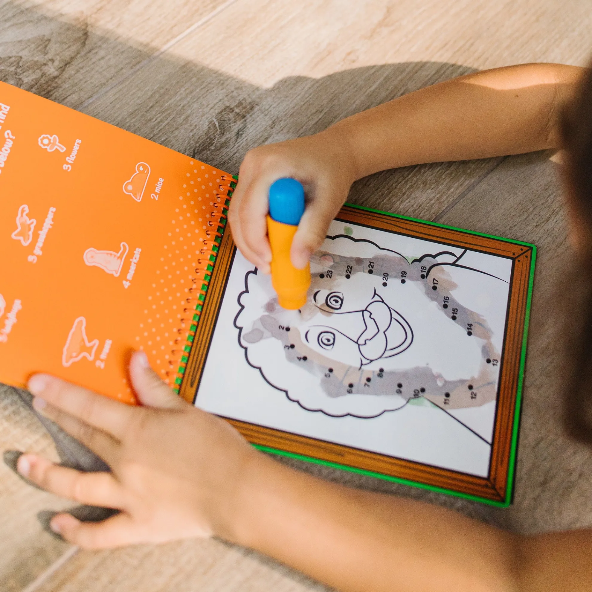 No-mess painting for kids! This exciting paint-with-water coloring book includes four reusable pages and a refillable water pen. Simply use the pen to connect the dots from 1-25 to reveal adorable safari animals, then color in each scene—details and vibrant color appear with every stroke! Let the page dry to erase the pictures and fill it in again and again. This take-along, spiral-bound book includes four connect-the-dots challenges, scenes to color, and search-and-find activities for each scene. The chunky-sized water pen is easy for kids to hold and stores neatly right in the front cover, so Water WOW books make ideal travel activity books for kids!