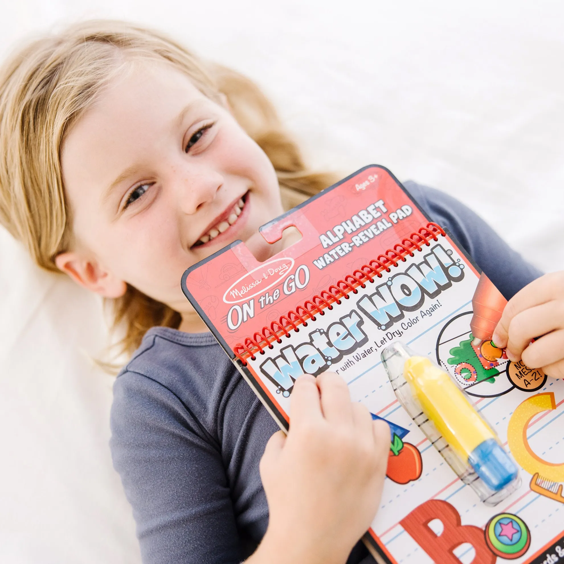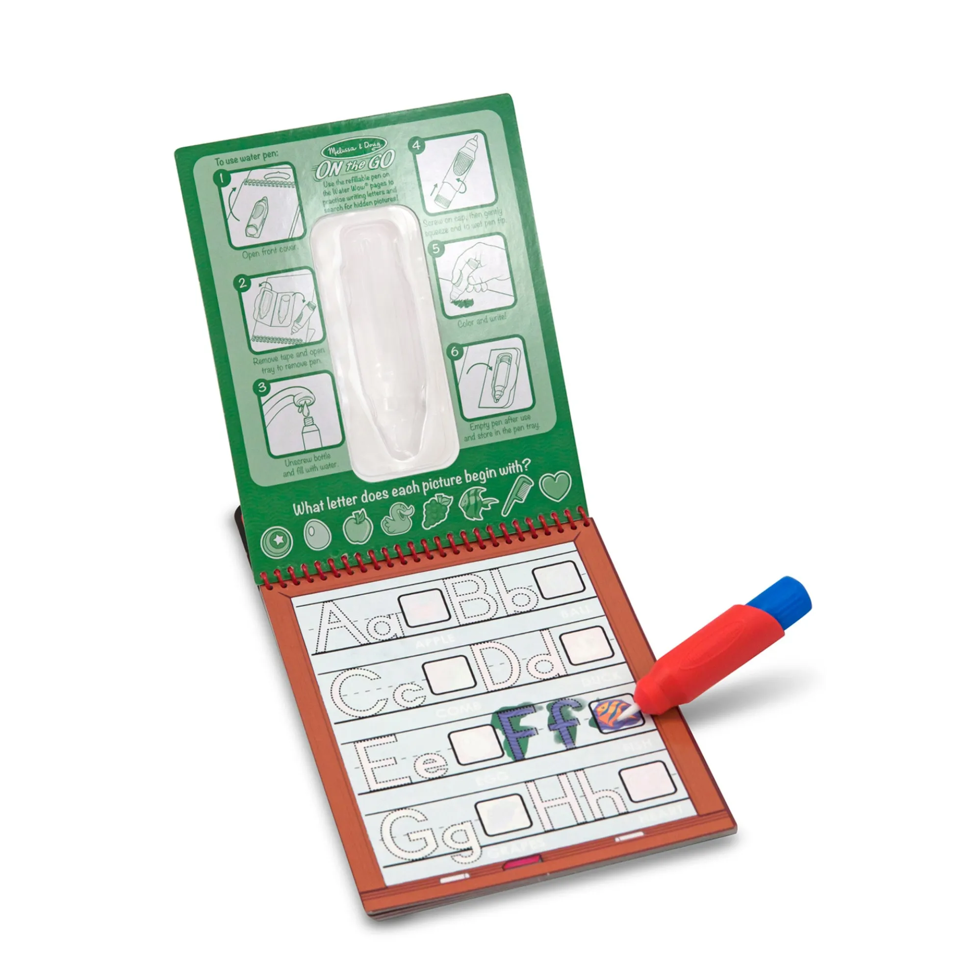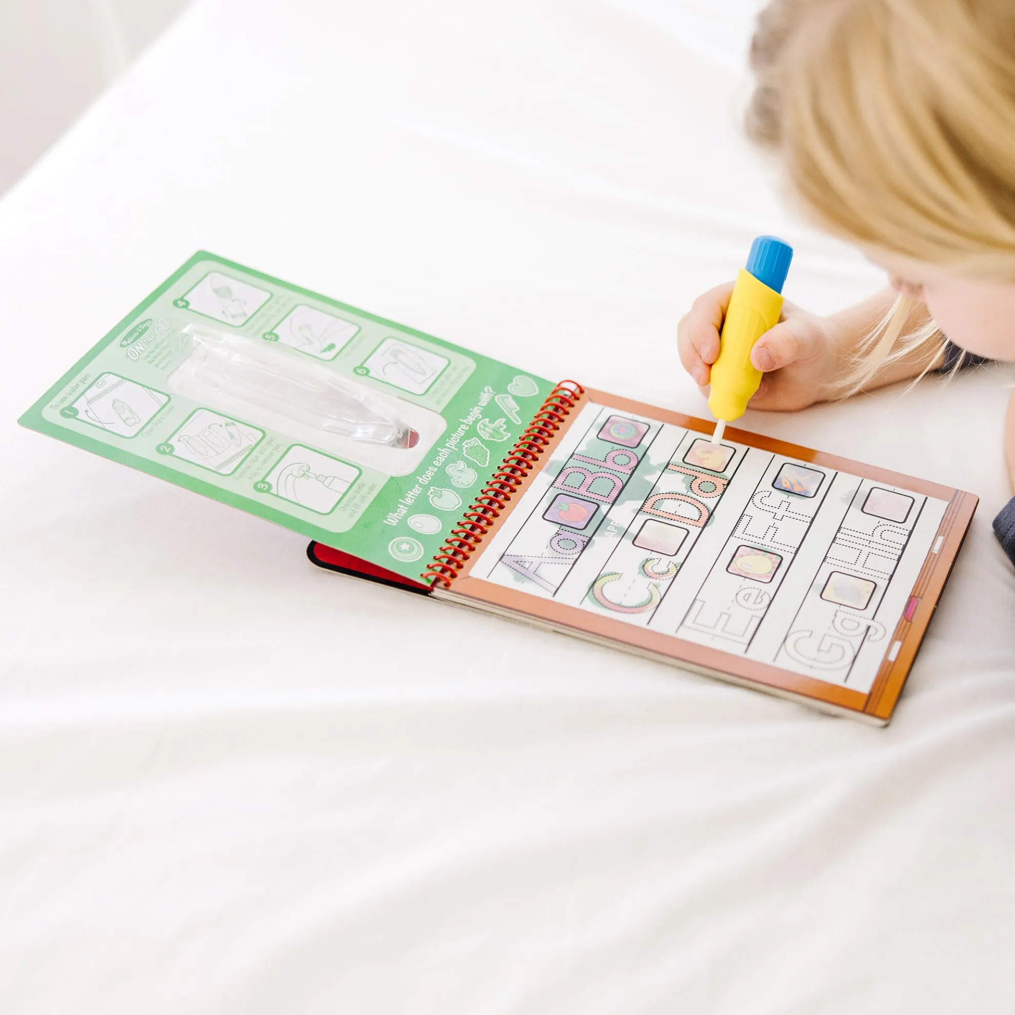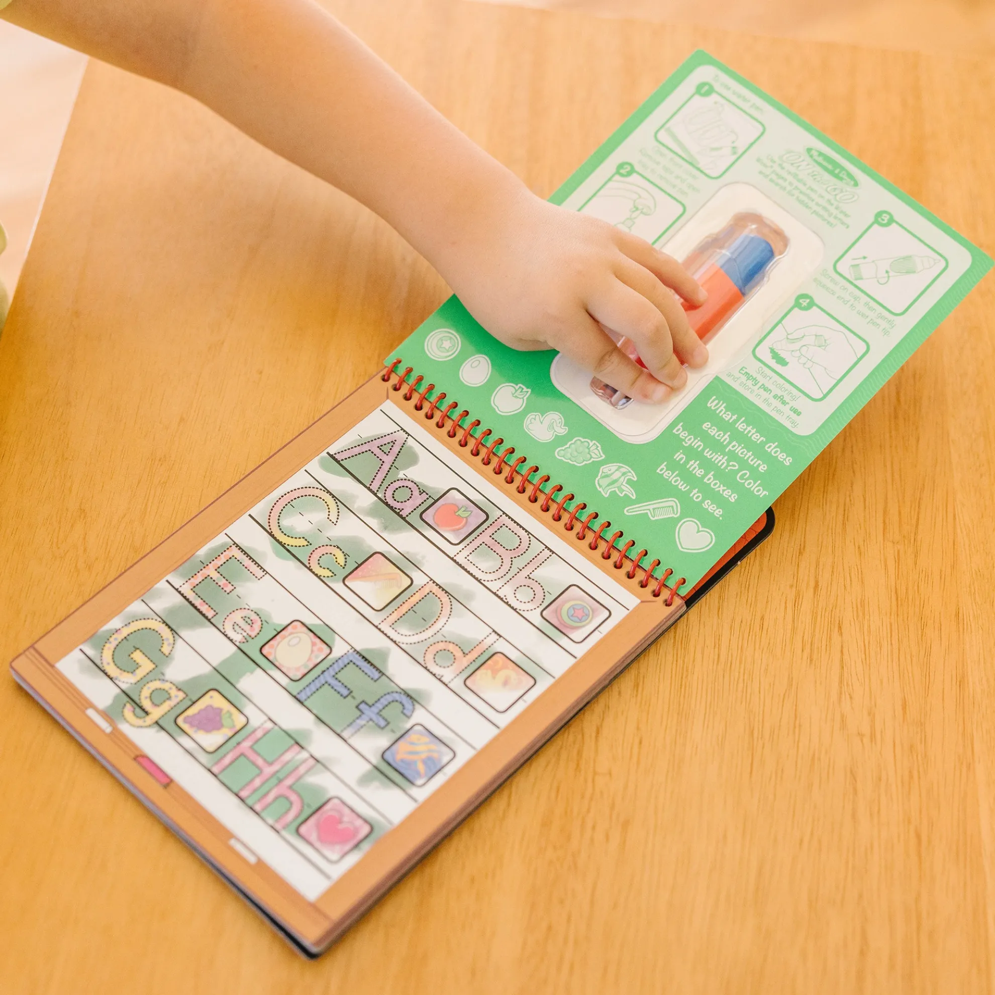 This exciting activity book includes four reusable pages and a refillable water pen. Use the pen to fill in each activity, from coloring in boxes to tracing letters, and see hidden colors and pictures appear with every stroke! Then simply let the page dry to erase the pictures and fill it in again and again. This alphabet-themed book includes every letter of the alphabet (uppercase and lowercase) to trace, alongside pictures of familiar objects to illustrate each sound. There are empty lines for practice, too! The chunky-sized water pen is easy for kids to hold and stores neatly right in the front cover. This product is certified by the Forest Stewardship Council. FSC certification ensures that products come from responsibly managed forests that provide environmental, social, and economic benefits, and that forests are protected for future generations. Please note that FSC certification applies to new inventory only (FSC C156584)
