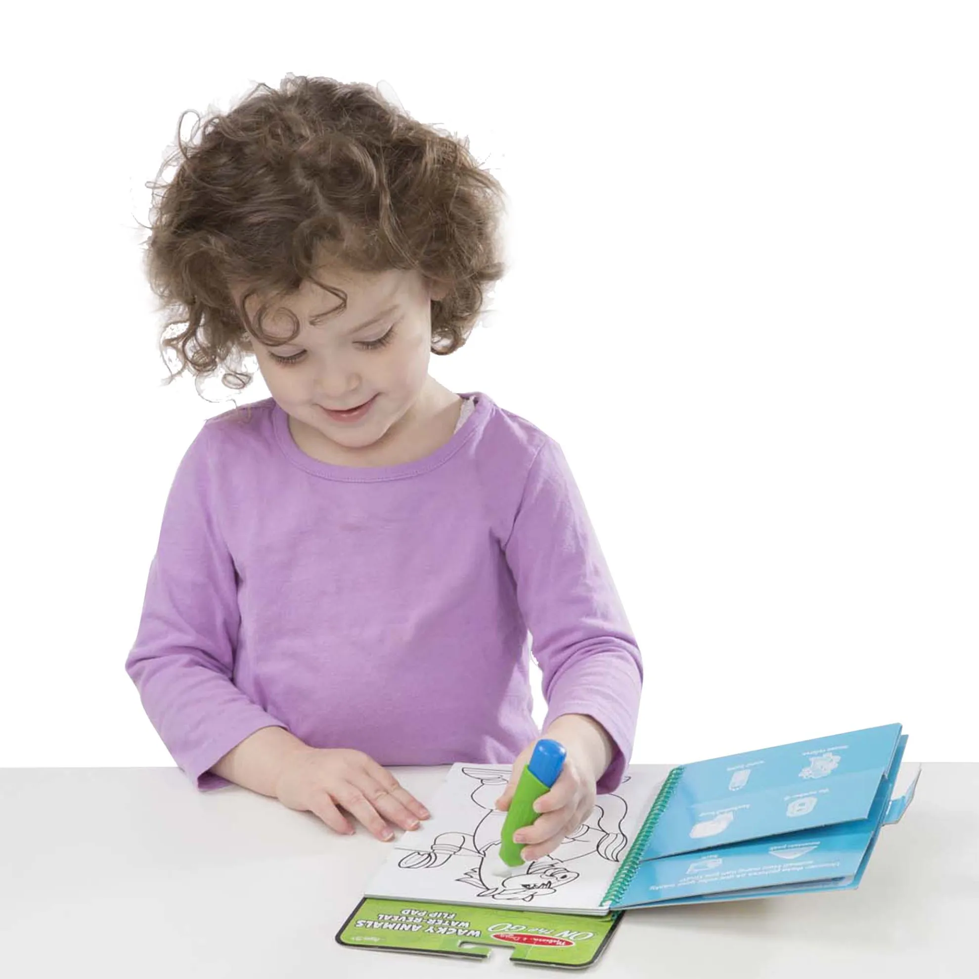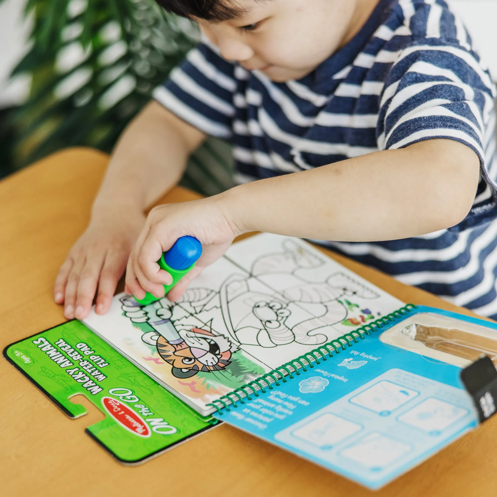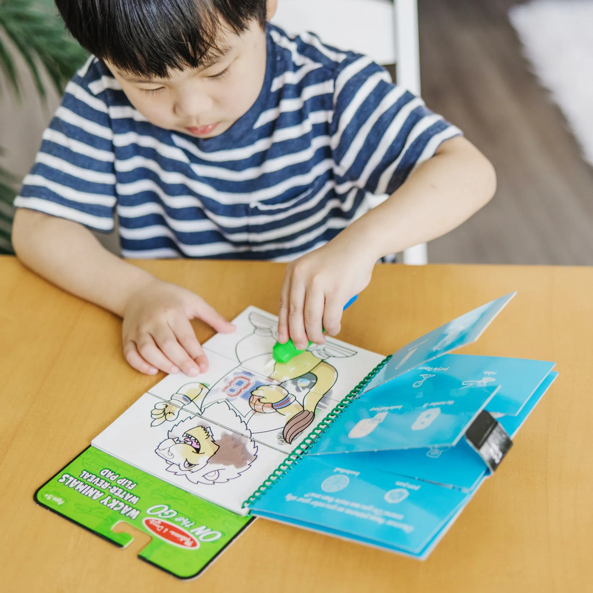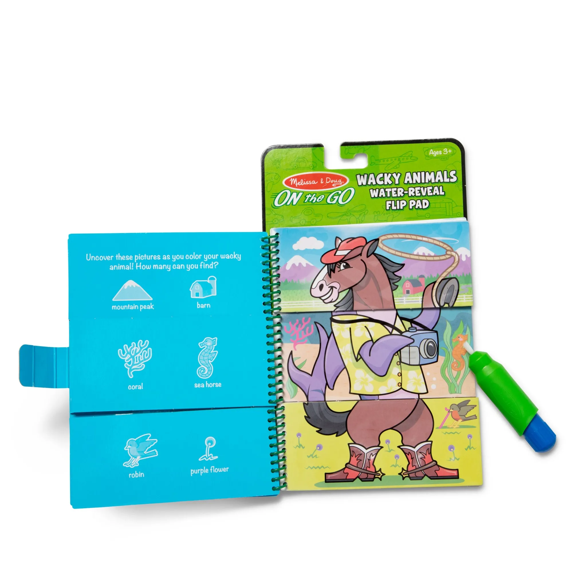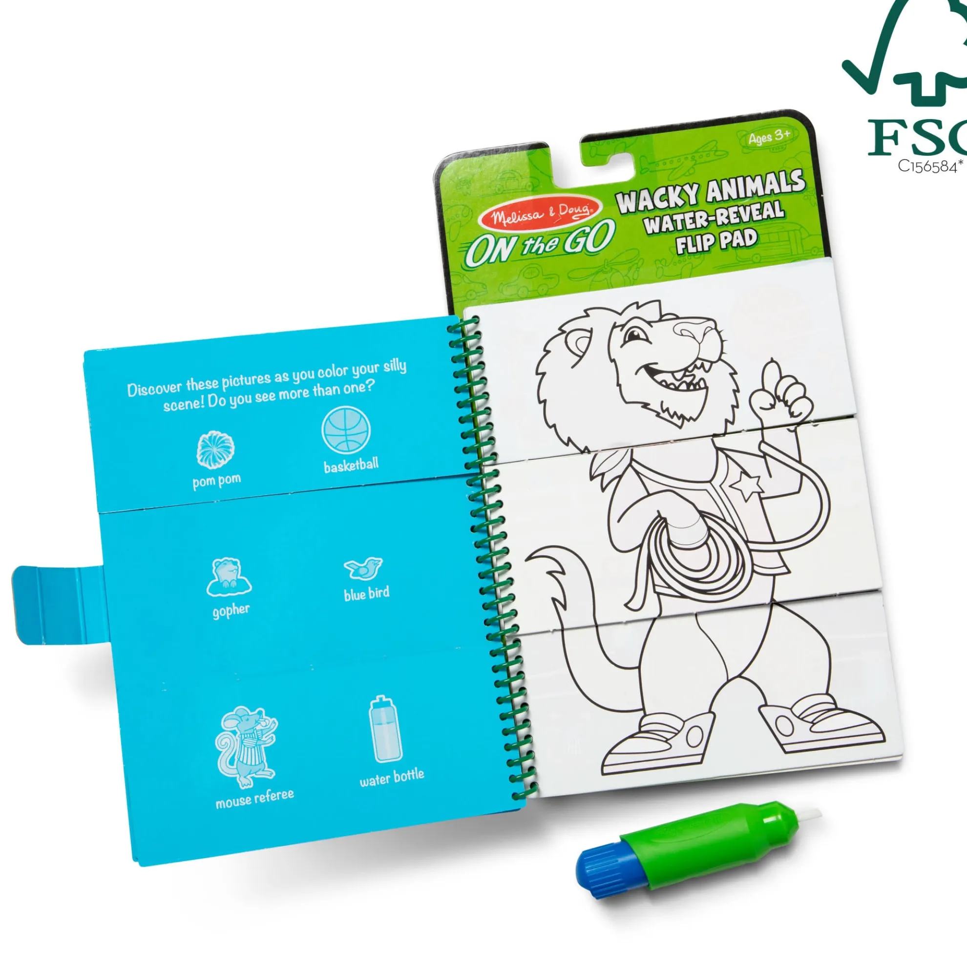 No-mess painting for kids! This exciting paint-with-water coloring book includes four three-part reusable flip pad pages and a refillable water pen. Flip to mix or match an animal head, middle, and feet, then simply use the pen to color in the panels—details and vibrant color appear with every stroke! Let the pages dry to “erase” the pictures and color in again and again. This wacky animal-themed book includes search-and-find activities on each panel. The chunky-sized water pen is easy for kids to hold and stores neatly right in the front cover, making this Water WOW! an ideal travel activity book for kids! This product is certified by the Forest Stewardship Council. FSC certification ensures that products come from responsibly managed forests that provide environmental, social, and economic benefits, and that forests are protected for future generations. Please note that FSC certification applies to new inventory only (FSC C156584).