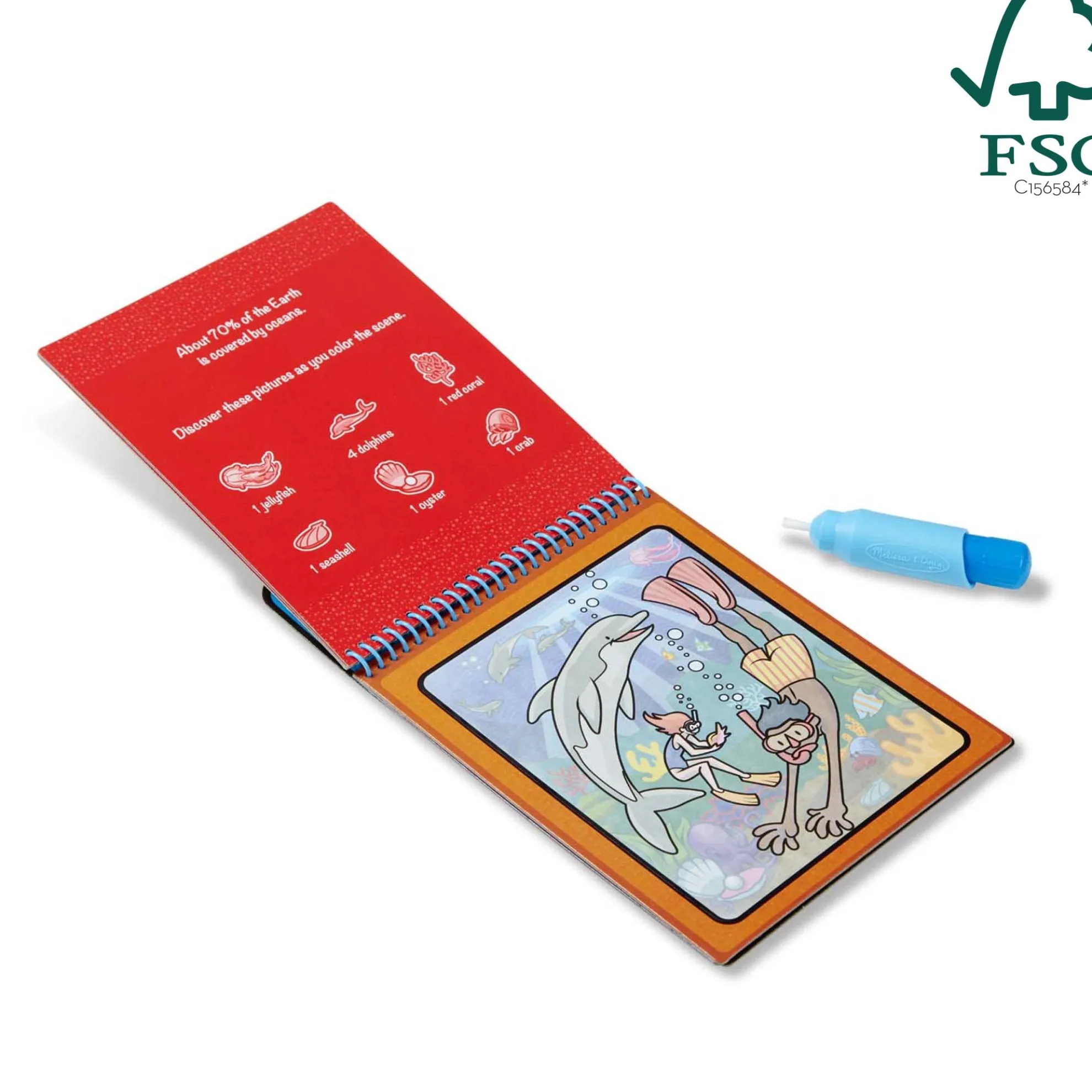 No-mess painting for kids! This exciting paint-with-water coloring book includes four reusable pages and a refillable water pen. Simply use the pen to color in each scene—details and vibrant color appear with every stroke! Then let the page dry to erase the pictures and color it in again and again. This adventure-themed book includes four scenes to color (underwater, pirates, space, and medieval knights), and a search-and-find activity for each scene. The chunky-sized water pen is easy for kids to hold and stores neatly right in the front cover, making this Water WOW! an ideal travel activity book and travel toy for kids! This product is certified by the Forest Stewardship Council. FSC certification ensures that products come from responsibly managed forests that provide environmental, social, and economic benefits, and that forests are protected for future generations. Please note that FSC certification applies to new inventory only (FSC C156584).