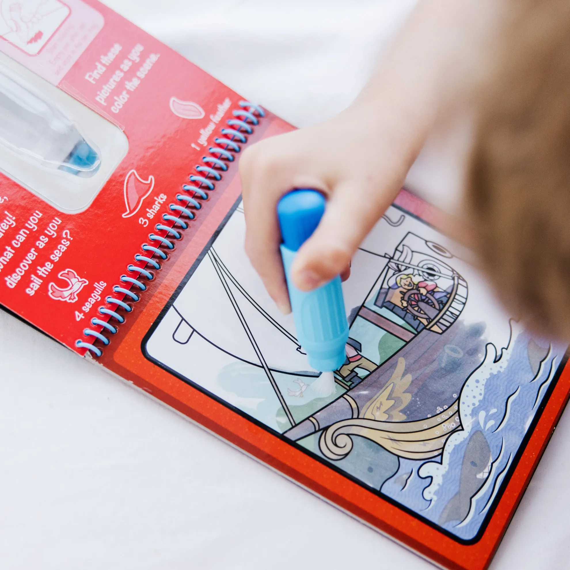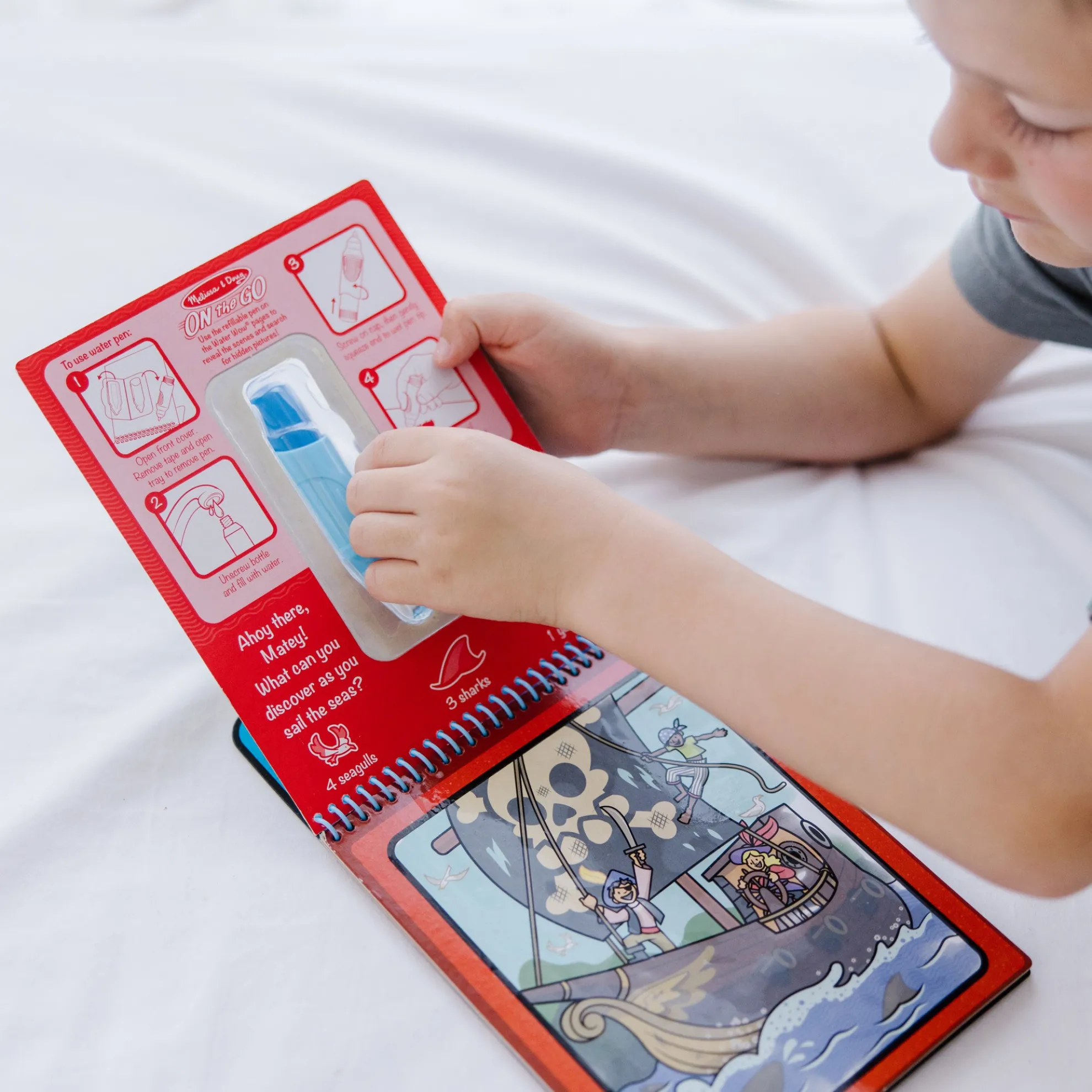 - 4 spiral-bound adventure-themed coloring boards (underwater, pirates, space, and medieval knights) and refillable water pen