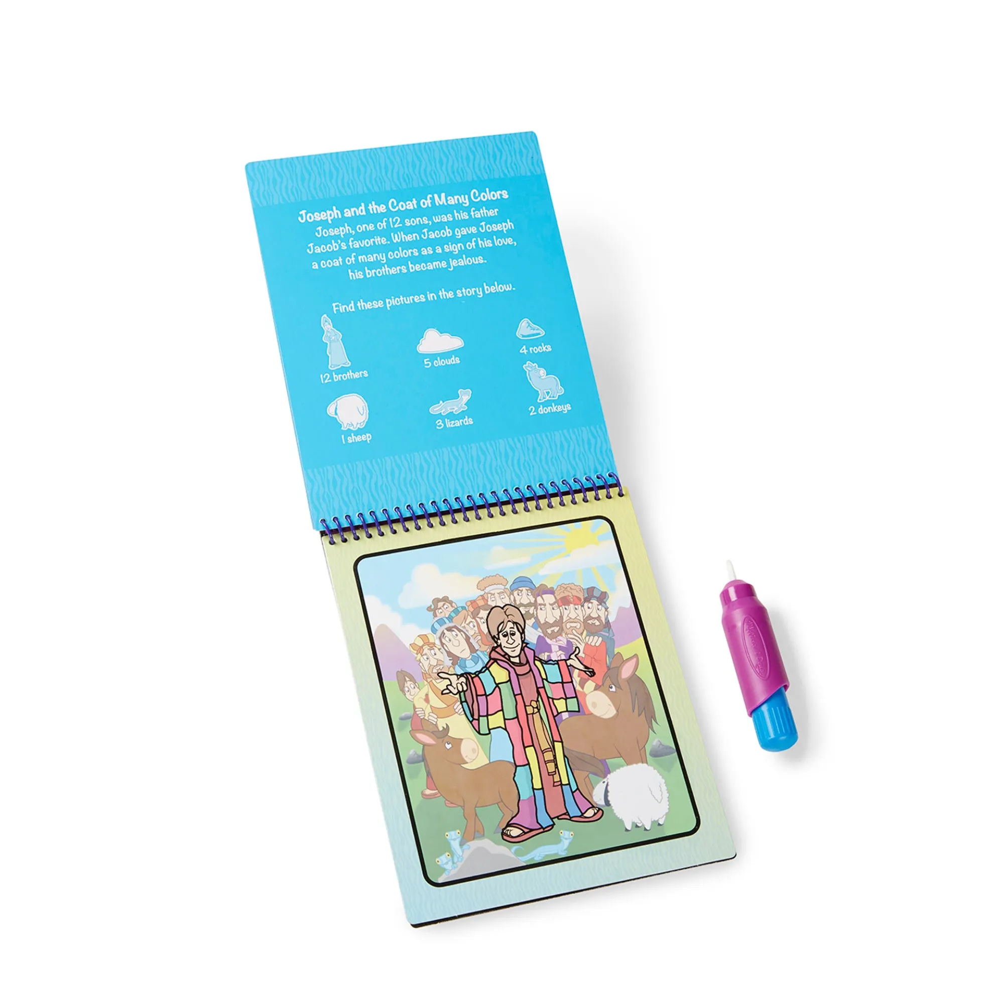- 4 Bible-themed coloring boards and refillable water pen