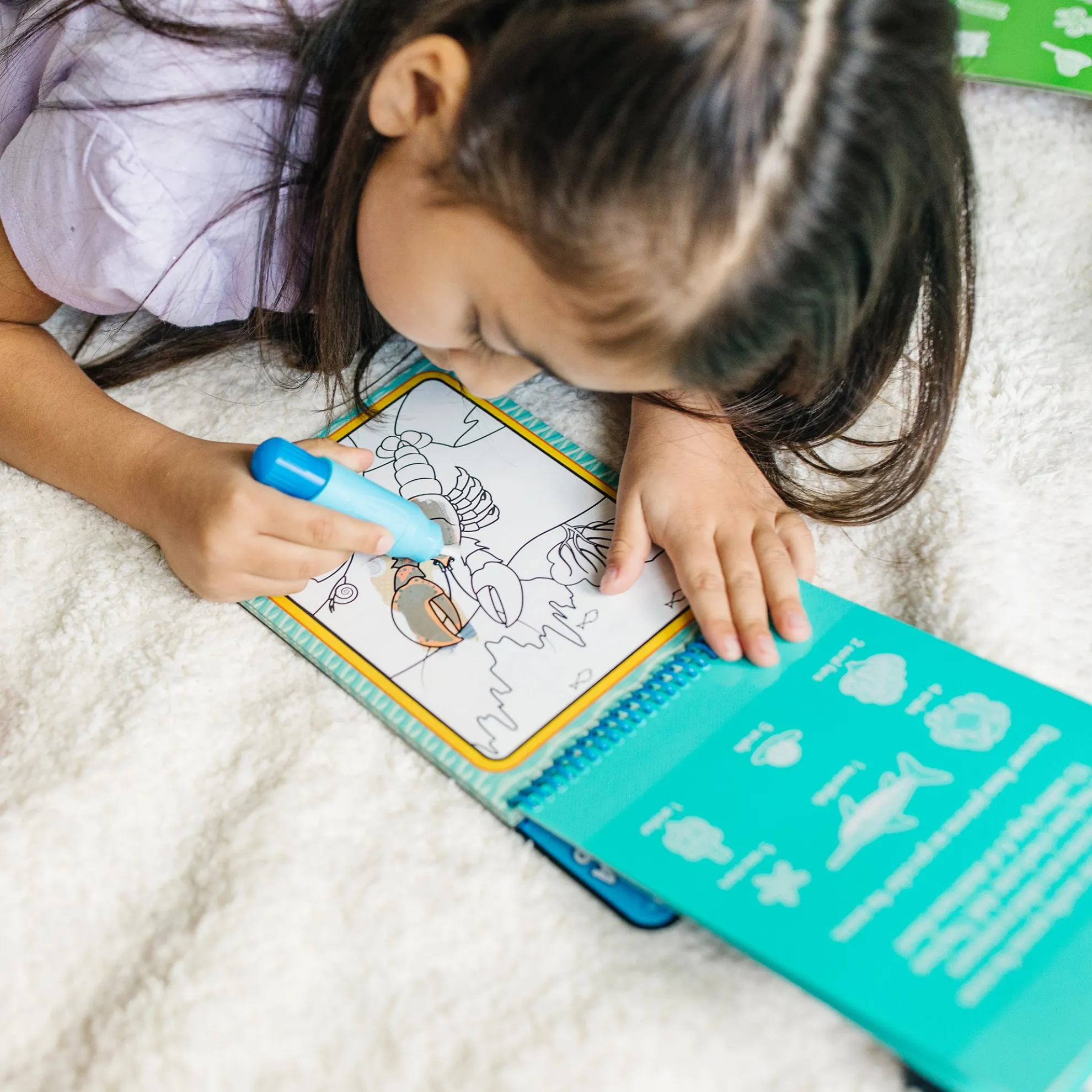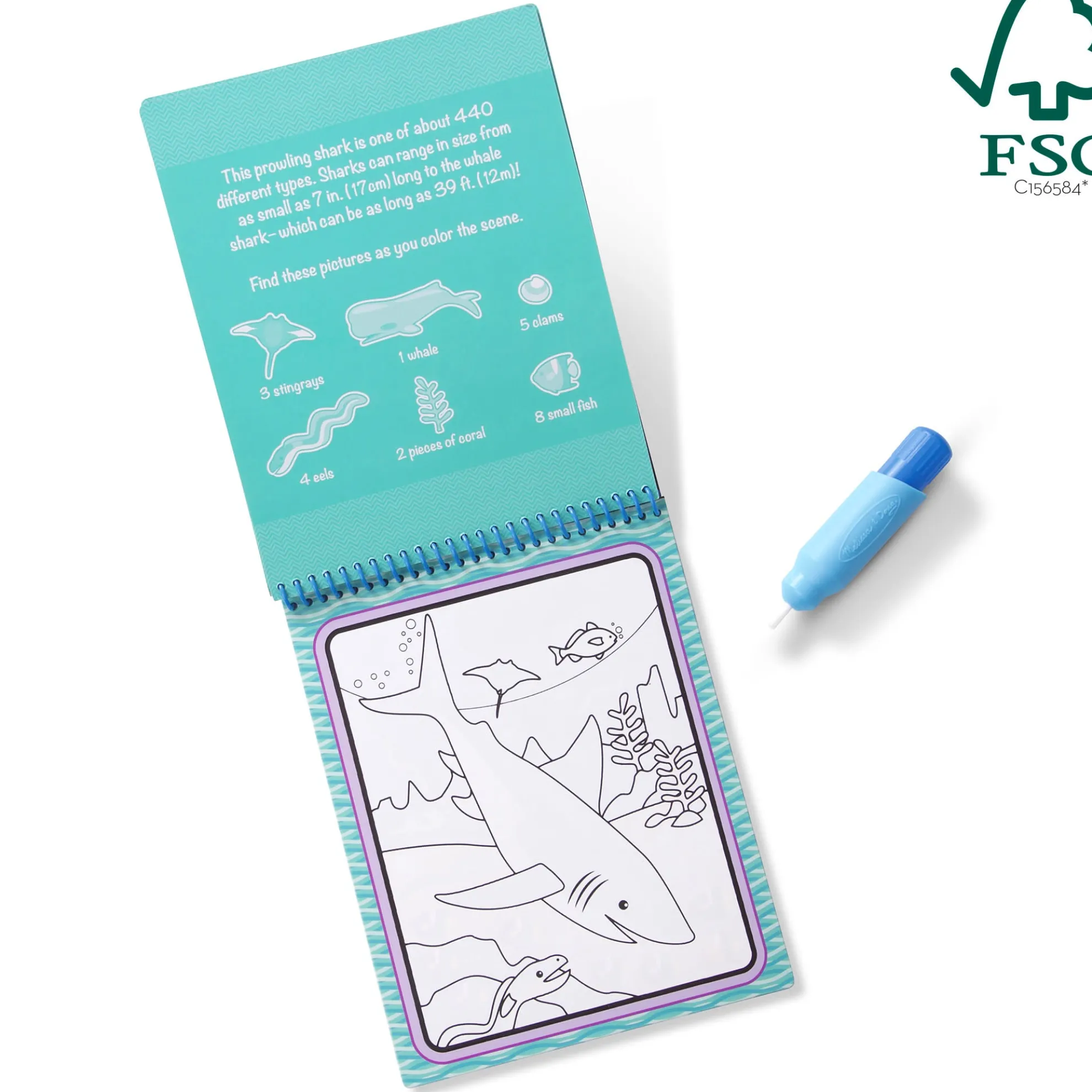 No-mess painting for kids! This exciting paint-with-water coloring book includes four reusable pages and a refillable water pen. Simply use the pen to color in each scene–details and vibrant color appear with every stroke! Then let the page dry to erase the pictures and fill it in again and again. This underwater-themed book includes four scenes to color, and a search-and-find activity for each scene. The chunky-sized water pen is easy for kids to hold and stores neatly right in the front cover, so Water WOW! books make ideal travel activity books and travel toys for kids. This product is certified by the Forest Stewardship Council. FSC certification ensures that products come from responsibly managed forests that provide environmental, social, and economic benefits, and that forests are protected for future generations. Please note that FSC certification applies to new inventory only (FSC C156584)