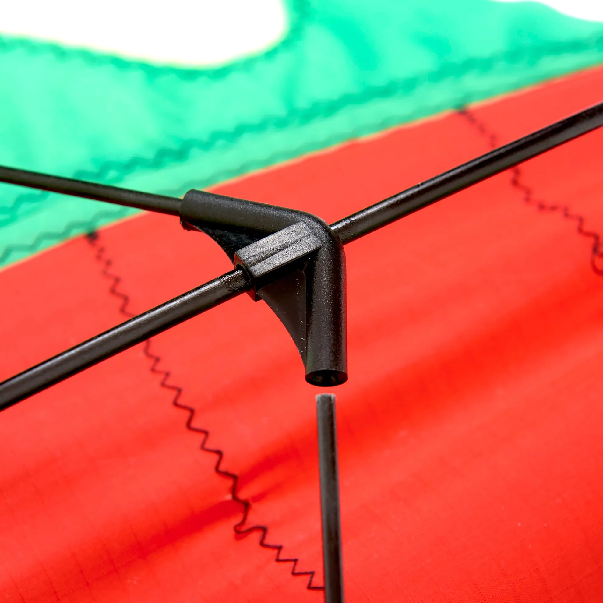 - Stitched, reinforced seams, heavy duty rip-stop nylon, and flexible fiberglass struts for countless hours of flying time