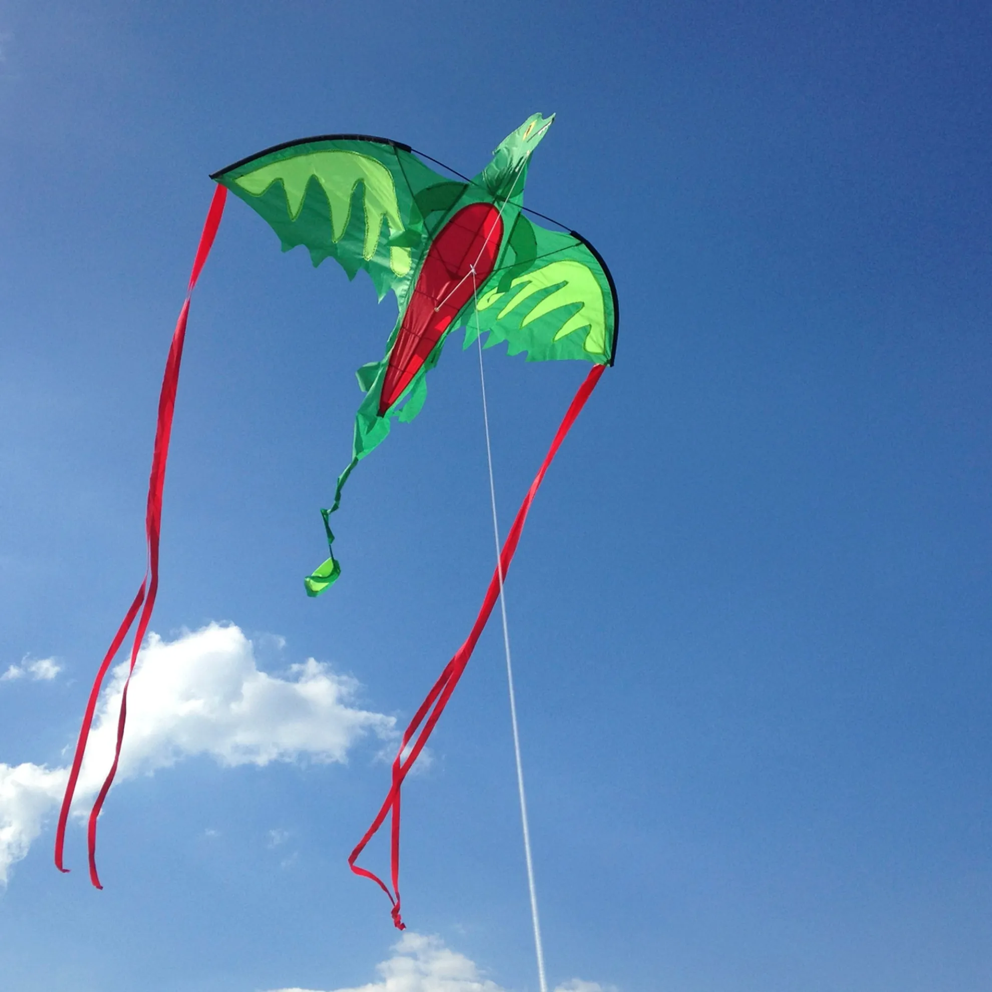 - Giant, colorful dragon-shaped kite with a 62-inch wingspan