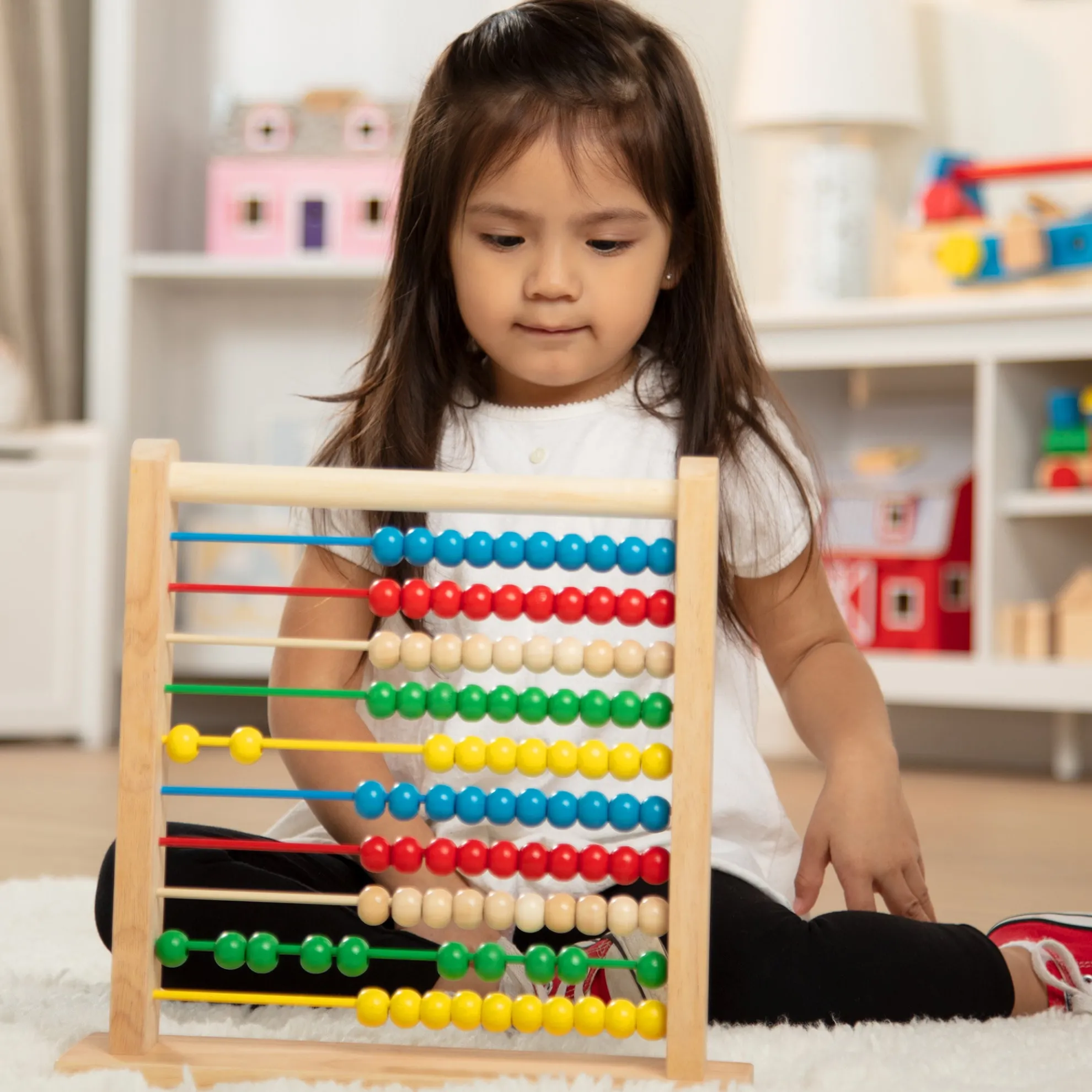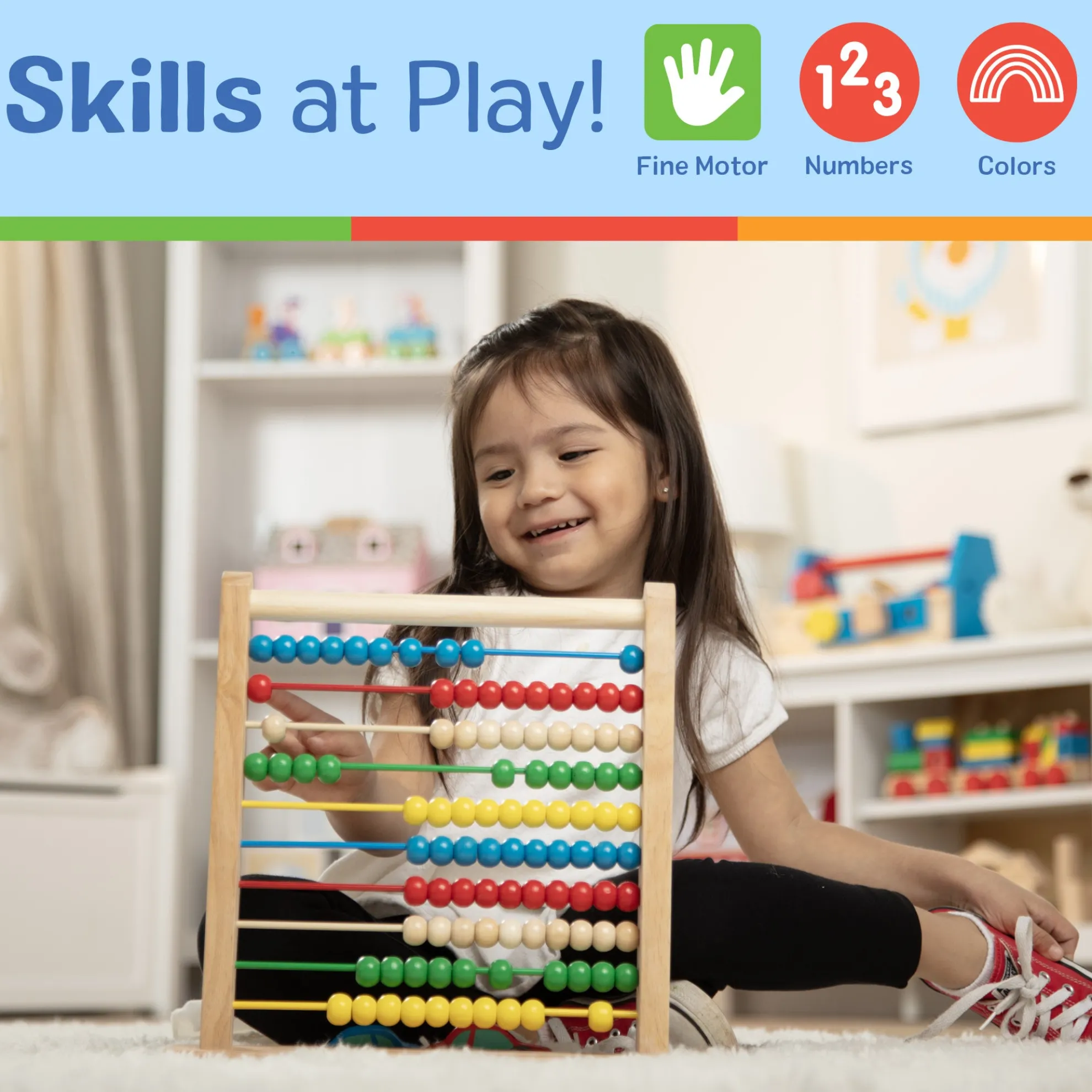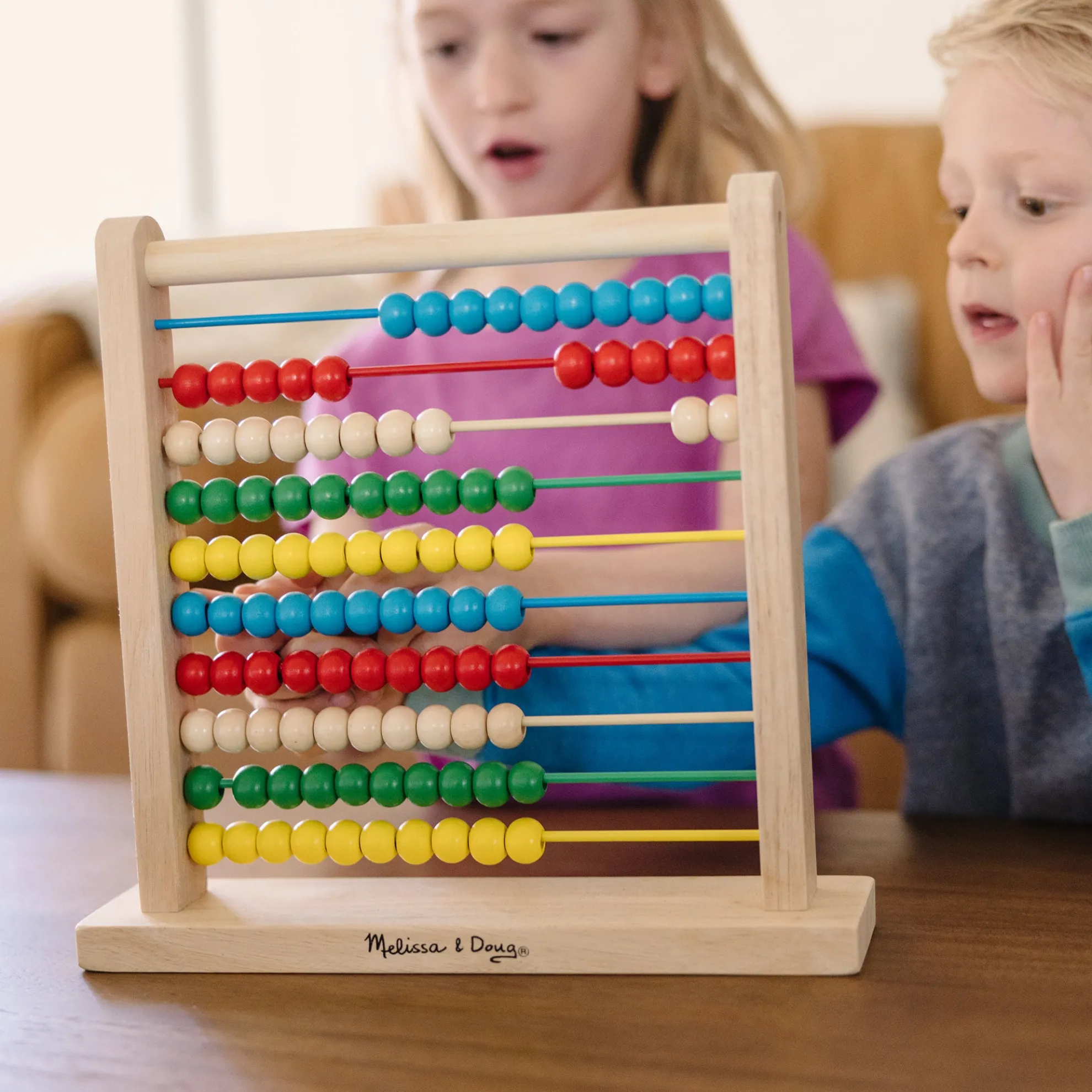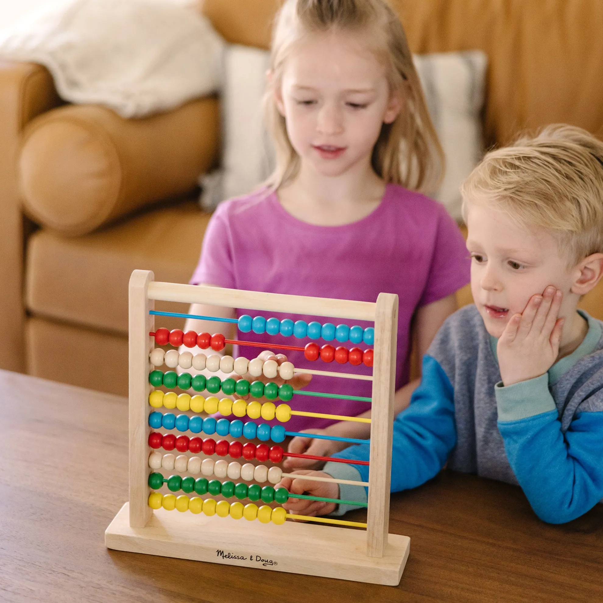 Kids can count on this wooden “calculator” for years of play and learning! The Melissa & Doug Abacus is beautifully crafted with a solid hardwood base, and 100 brightly colored wooden beads. The sturdy frame holds 10 thick-coated wires with 10 colorful wooden beads on each — 100 beads in all. Younger kids can slide the beads back and forth to explore different patterns and colors, while practicing their fine motor skills. Older children can enjoy using the abacus as a visual and hands-on way to learn addition and subtraction and other early math concepts. The beads are sized for little hands, and glide easily across the smooth wires. The counting toy comes with eight extension activities to add to your child’s learning experience. With no loose pieces and no mess, it’s a great toy to pack in a bag for on-the-go play. The abacus makes a great gift for kids ages three and older for hands-on, screen-free play.