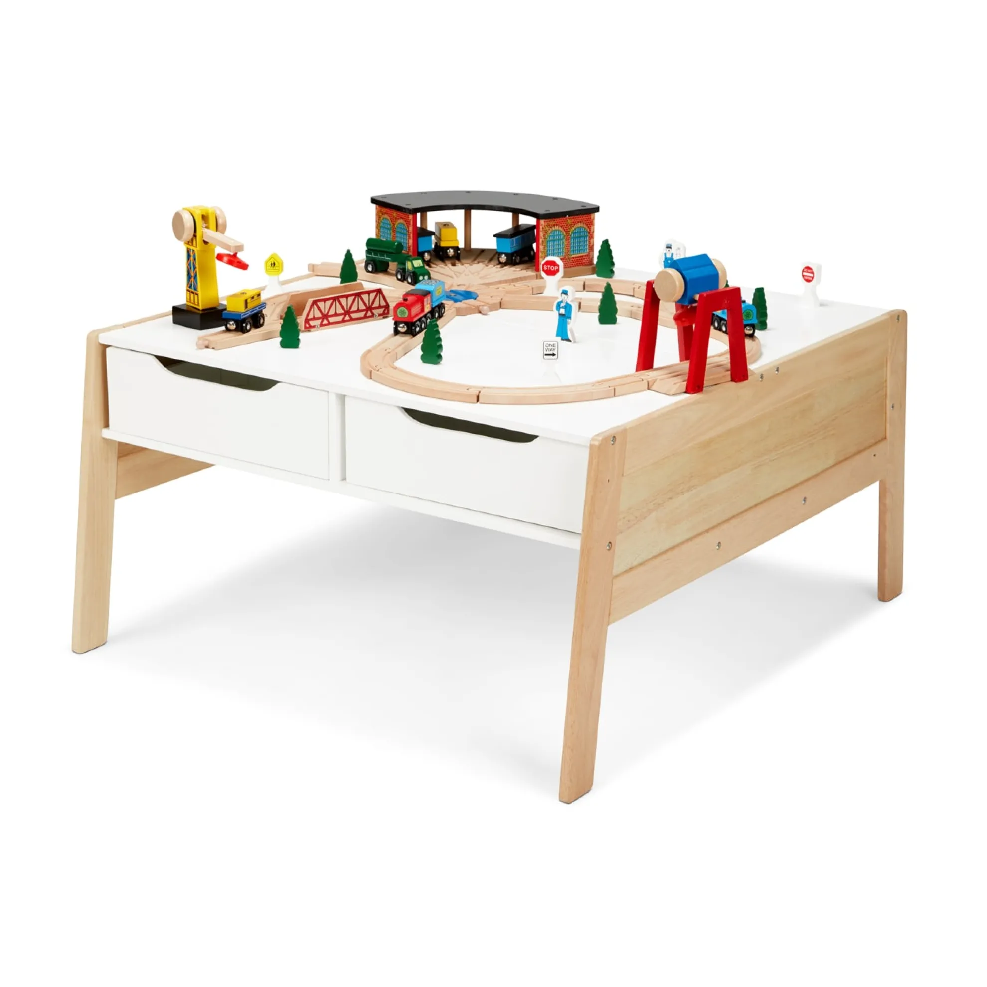 - Perfect for train sets, games, puzzles, arts and crafts, snacks, and more; storage bins under tabletop for quick cleanup and handy access to supplies