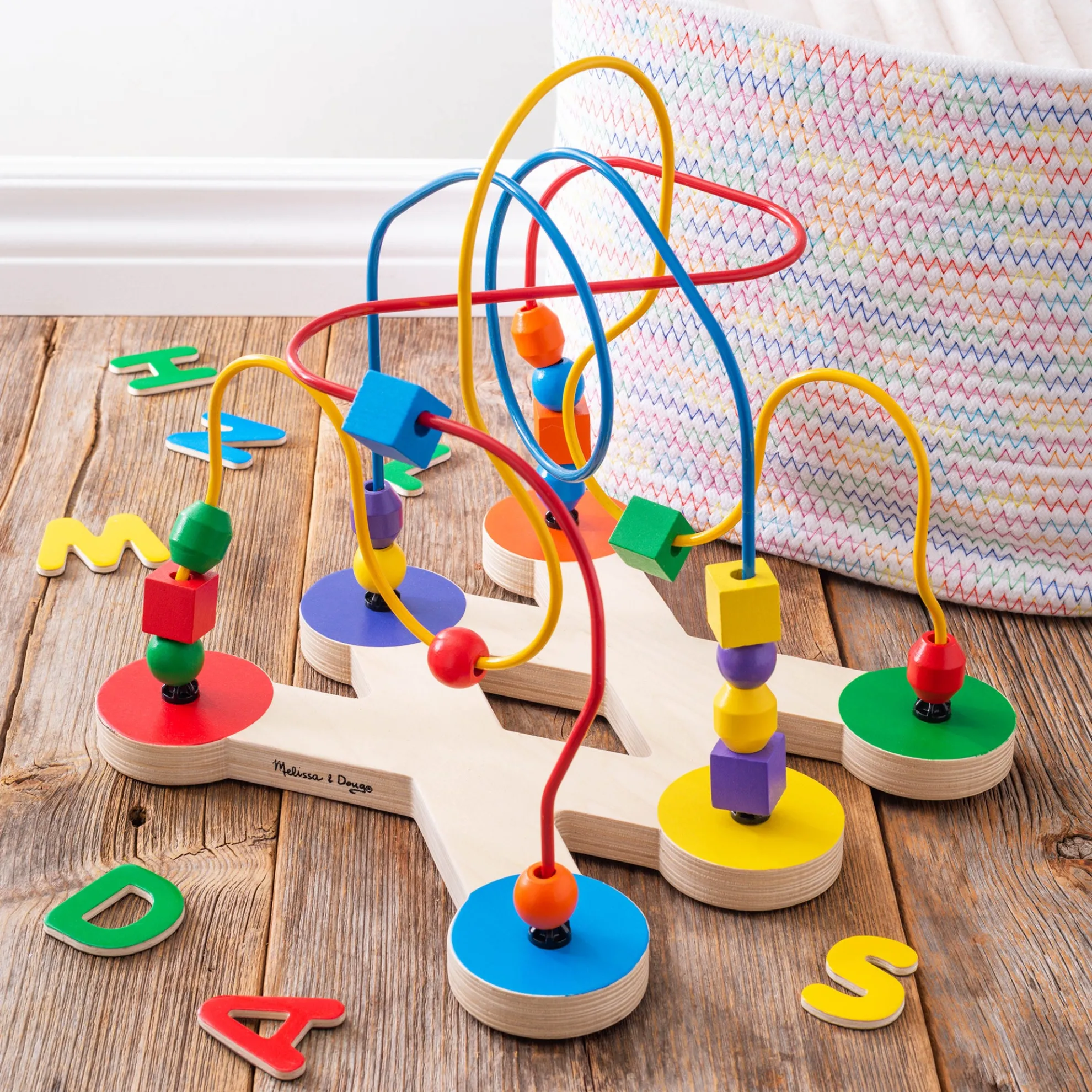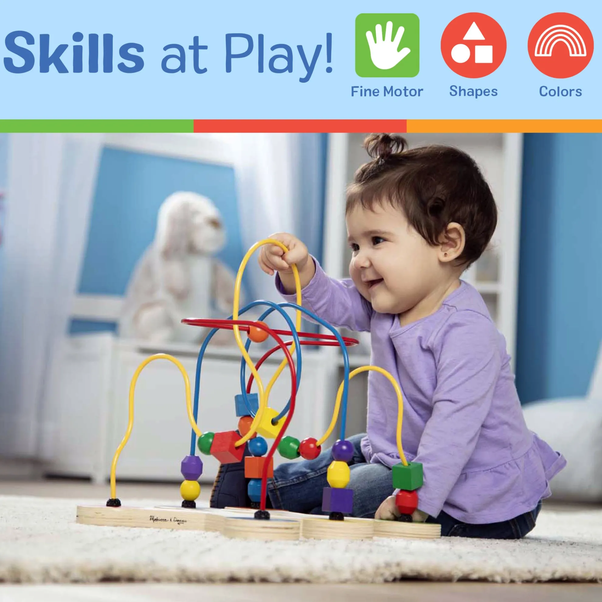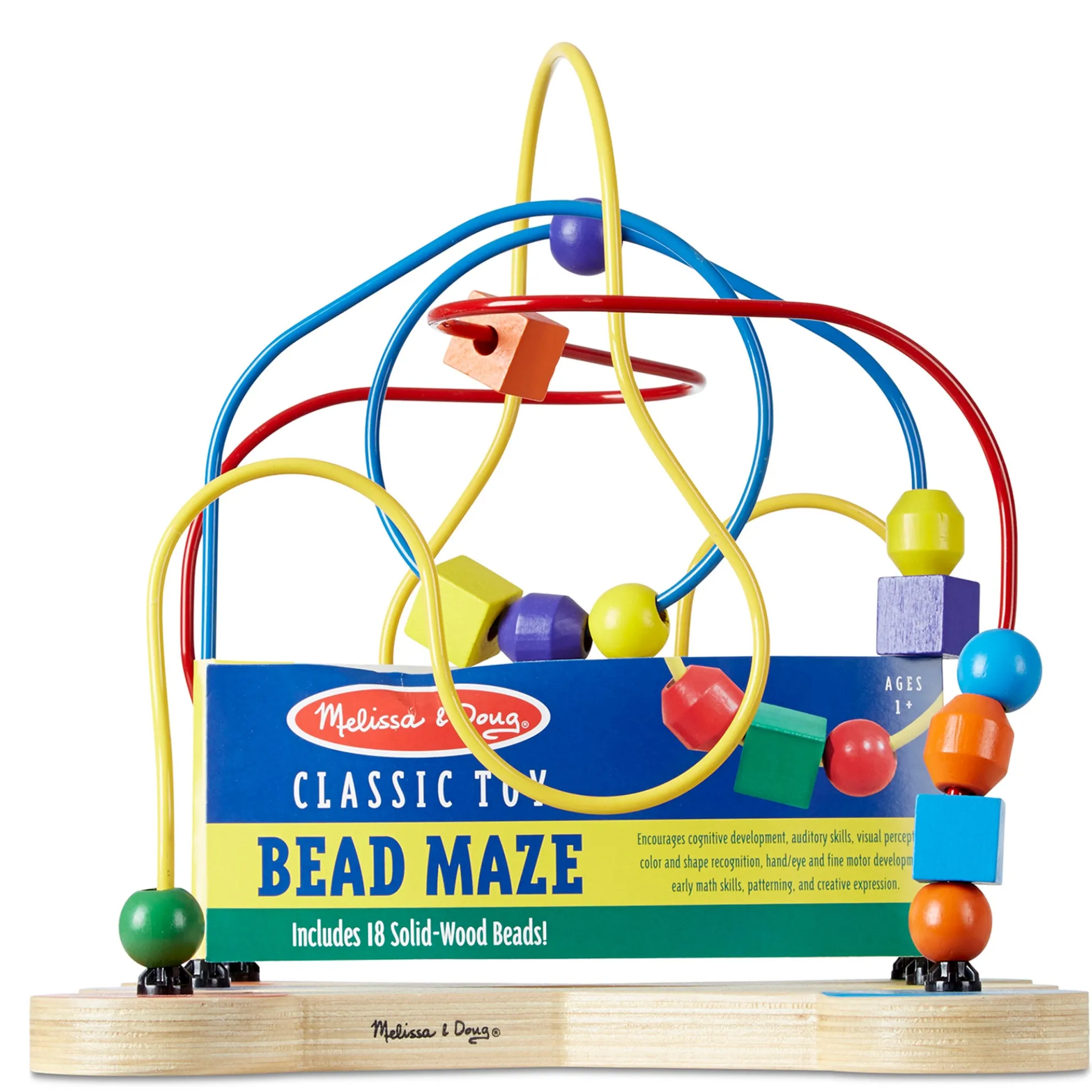 Engage little ones with this eye-catching Classic Toy Bead Maze. The colorful toy features 18 multi-shaped, wooden beads that swoop and slide along soft-coated wire pathways shaped “every which way”. The brightly-colored wooden beads come in a variety of shapes and sizes that are easy to grip, and feel just right in little hands. This maze has been designed to encourage development of multiple critical skills in children 12 months and above. They can practice sensory skills, fine motor skills, and hand-eye coordination while they enjoy independent play. Parents will appreciate the sturdy construction and solid wood blocks that display quality craftsmanship for extended safe use. This classic developmental toy makes a great educational gift for babies and toddlers ages one and older, and provides hands-on, screen-free play. For more than 30 years, Melissa & Doug has created beautifully designed imagination- and creativity-sparking products that NBC News called “the gold standard in early childhood play.”