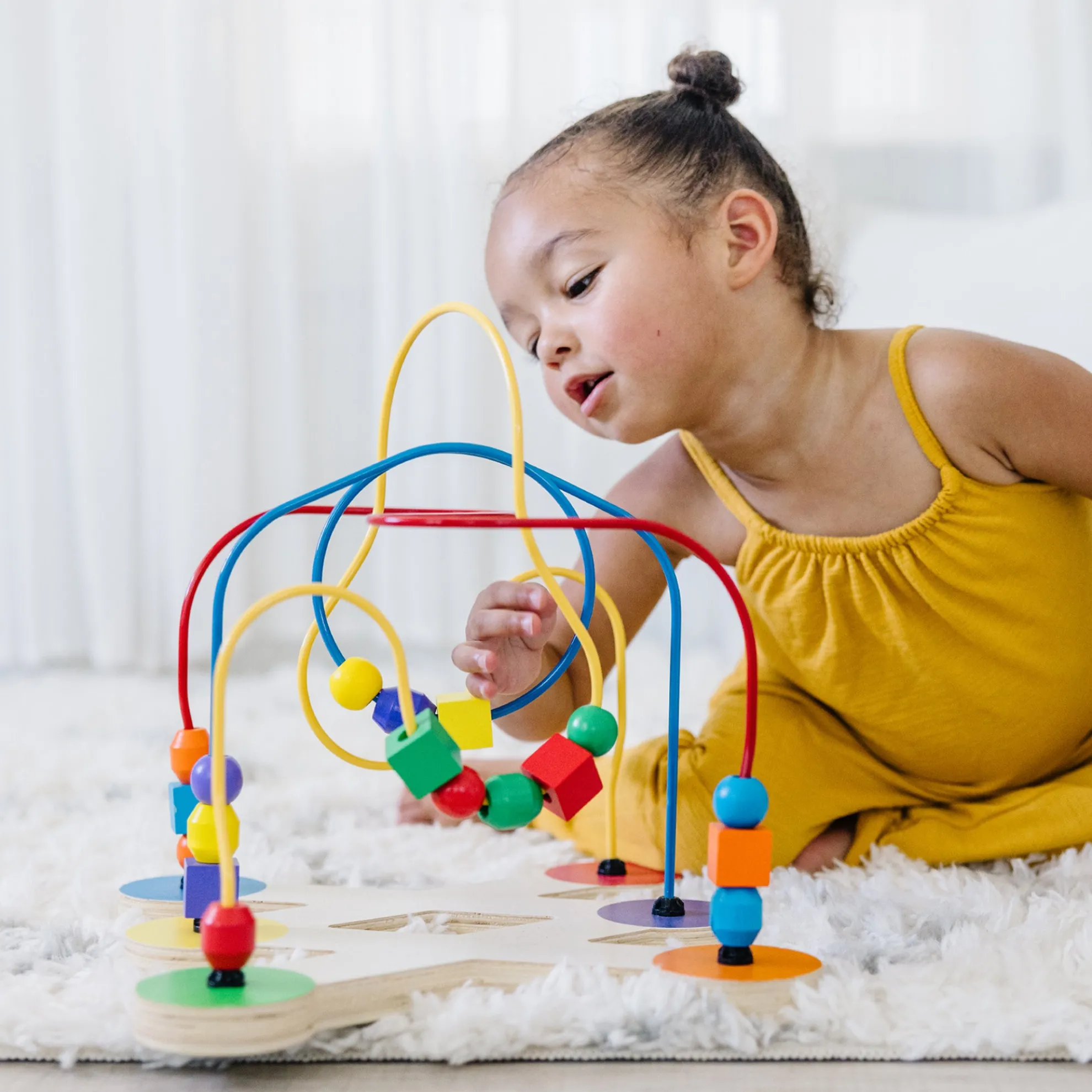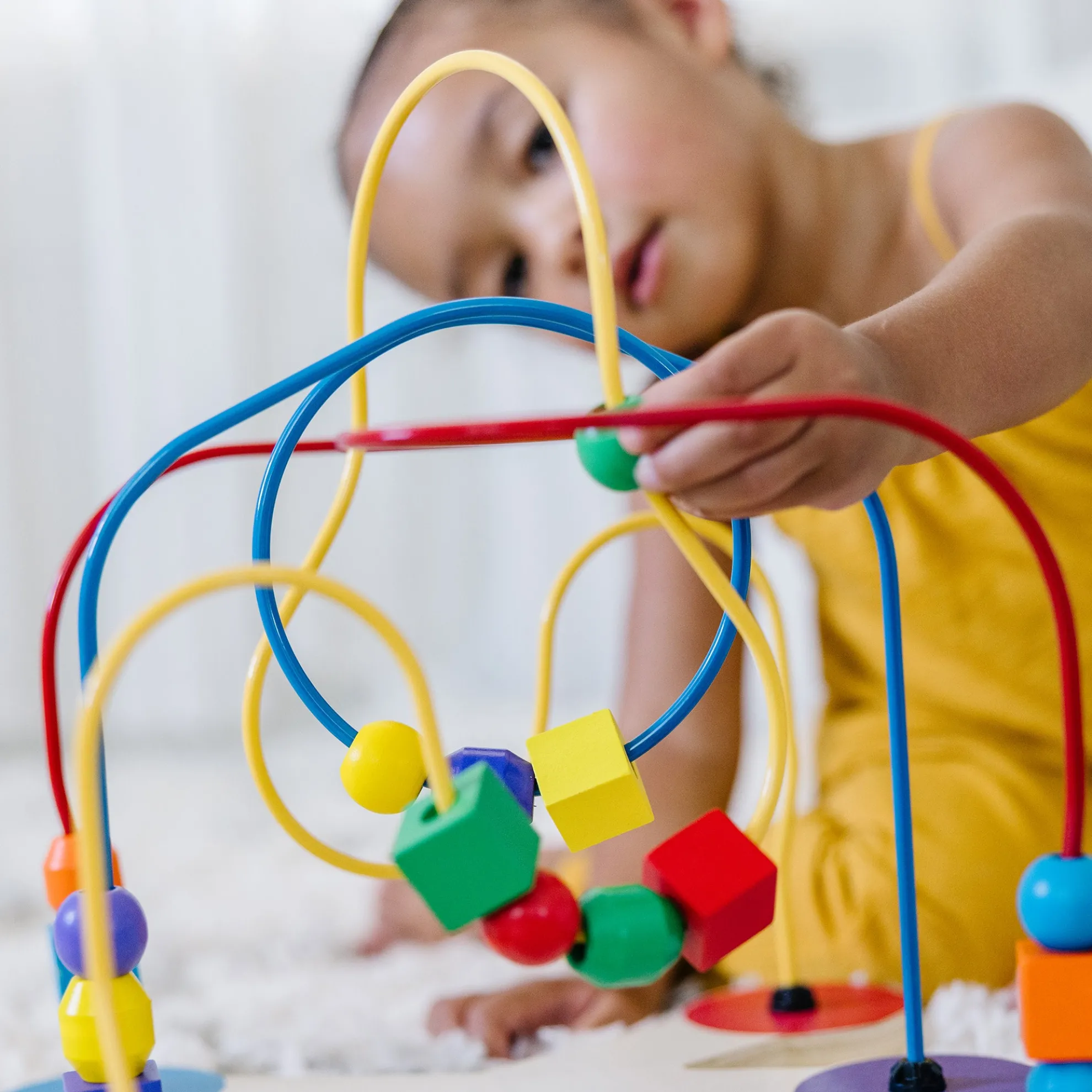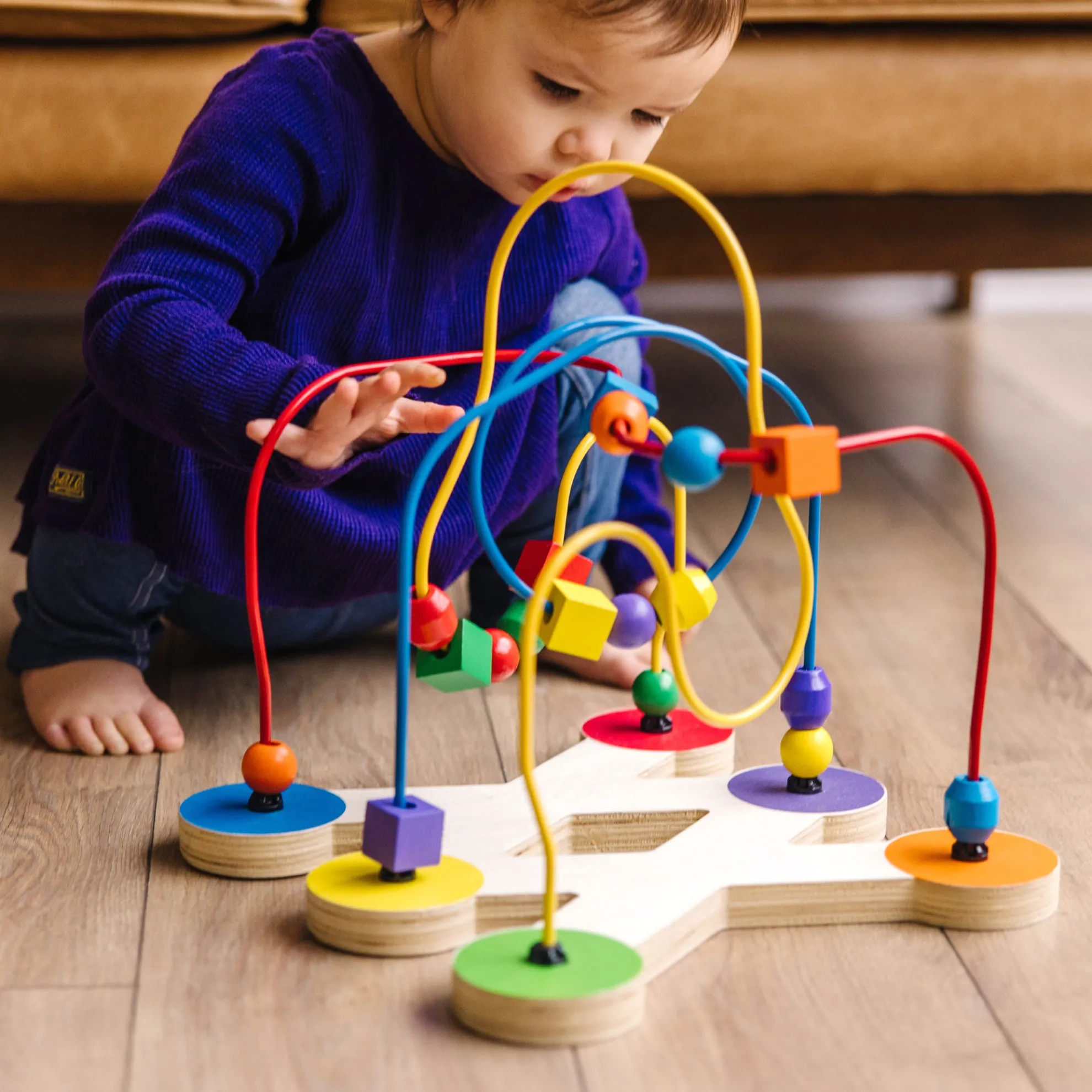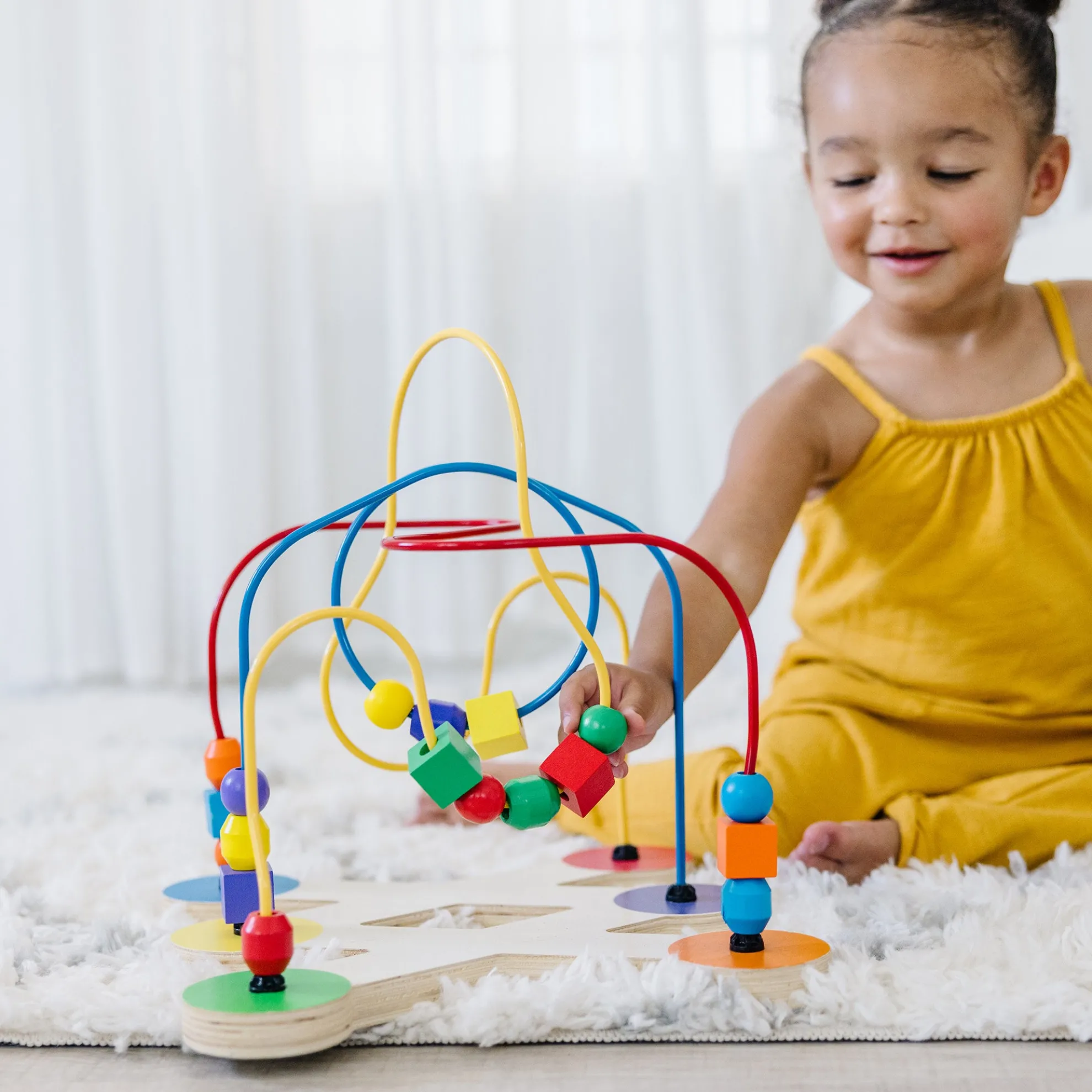 Engage little ones with this eye-catching Classic Toy Bead Maze. The colorful toy features 18 multi-shaped, wooden beads that swoop and slide along soft-coated wire pathways shaped “every which way”. The brightly-colored wooden beads come in a variety of shapes and sizes that are easy to grip, and feel just right in little hands. This maze has been designed to encourage development of multiple critical skills in children 12 months and above. They can practice sensory skills, fine motor skills, and hand-eye coordination while they enjoy independent play. Parents will appreciate the sturdy construction and solid wood blocks that display quality craftsmanship for extended safe use. This classic developmental toy makes a great educational gift for babies and toddlers ages one and older, and provides hands-on, screen-free play. For more than 30 years, Melissa & Doug has created beautifully designed imagination- and creativity-sparking products that NBC News called “the gold standard in early childhood play.”