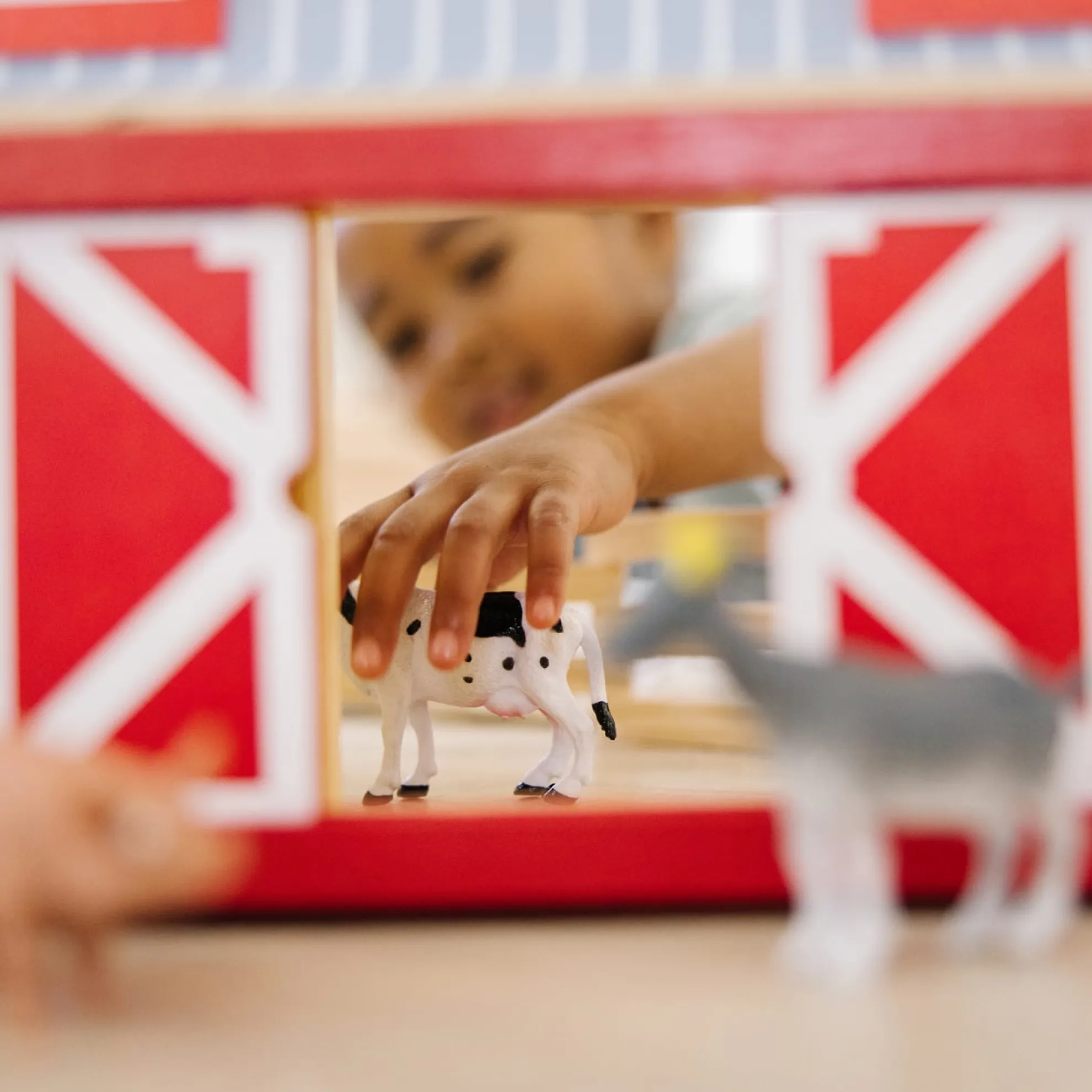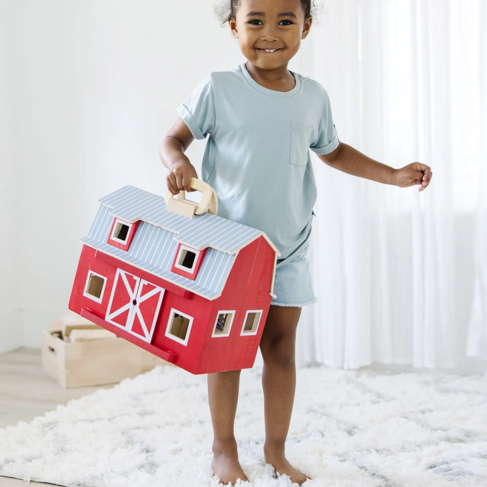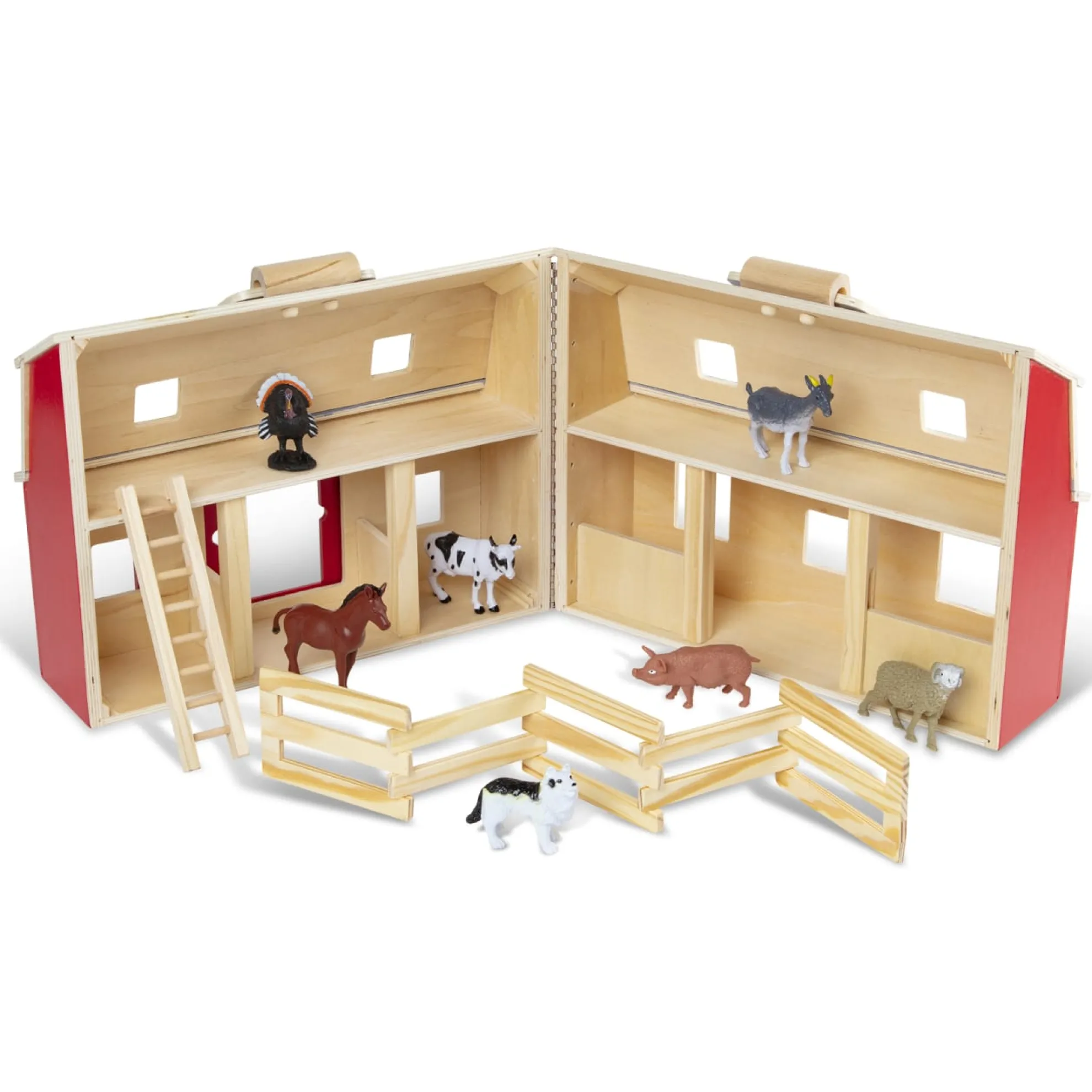 - Portable wooden barn opens wide for easy play access and closes up to take with you