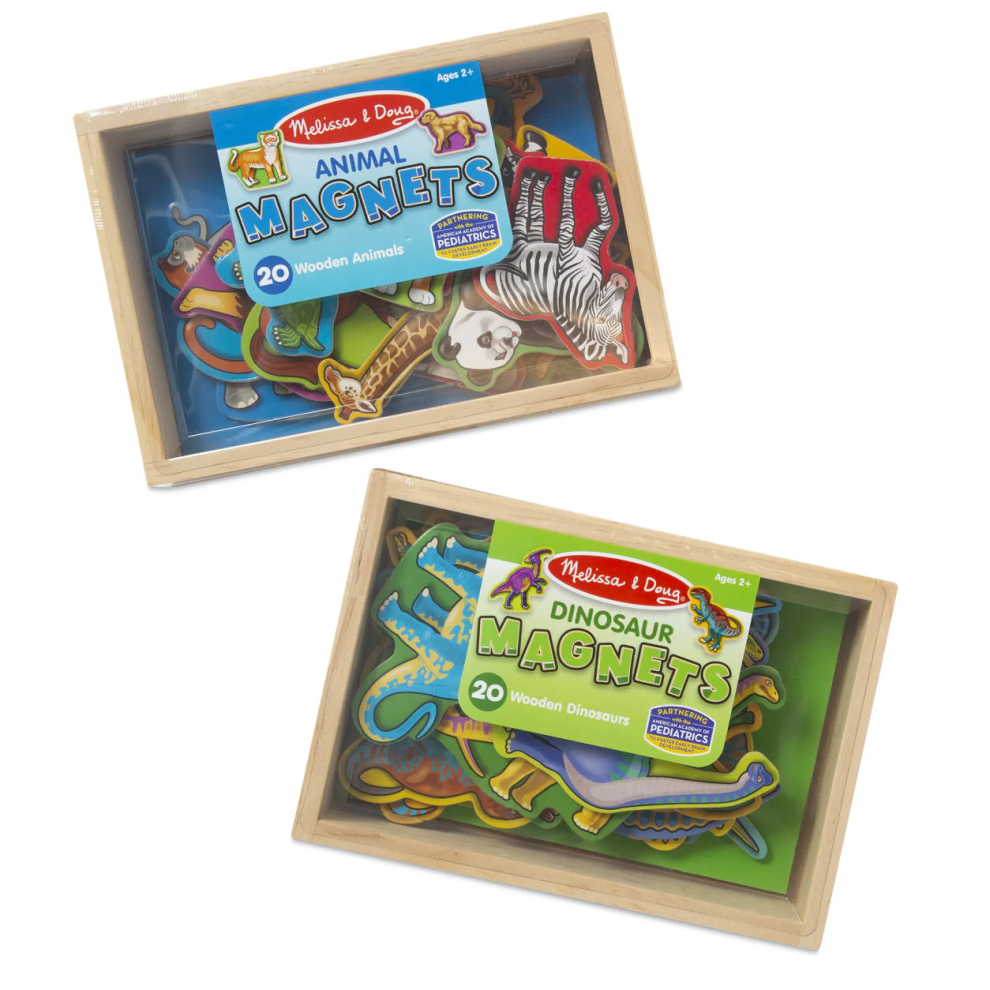Everyone is attracted to these magnetic creatures! Twenty animal magnets and twenty dinosaur magnets make up this extra-large set, all packaged in two wooden boxes to make them easy to organize and store.