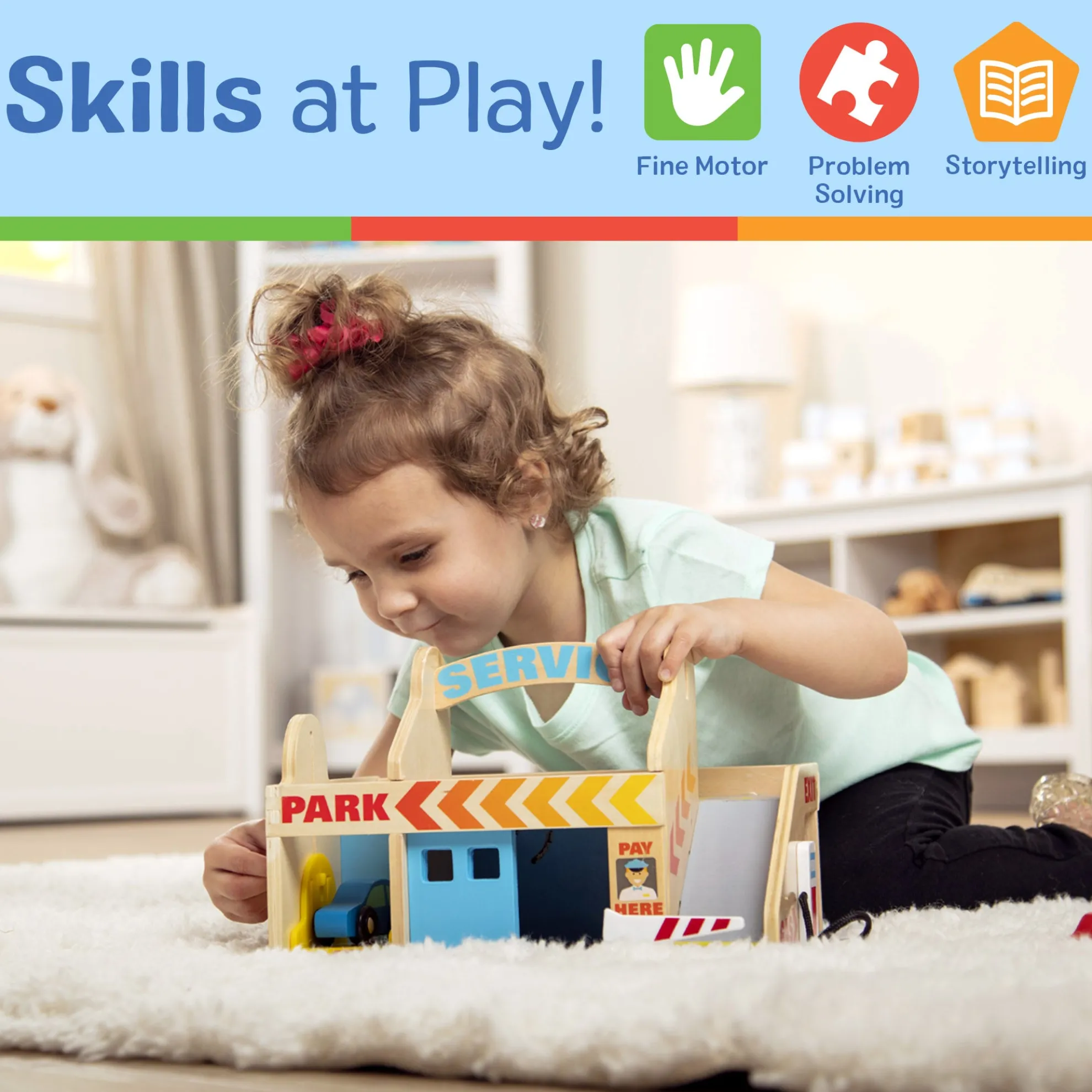- Encourages fine motor skills, hand-eye coordination, problem solving, and imaginative play