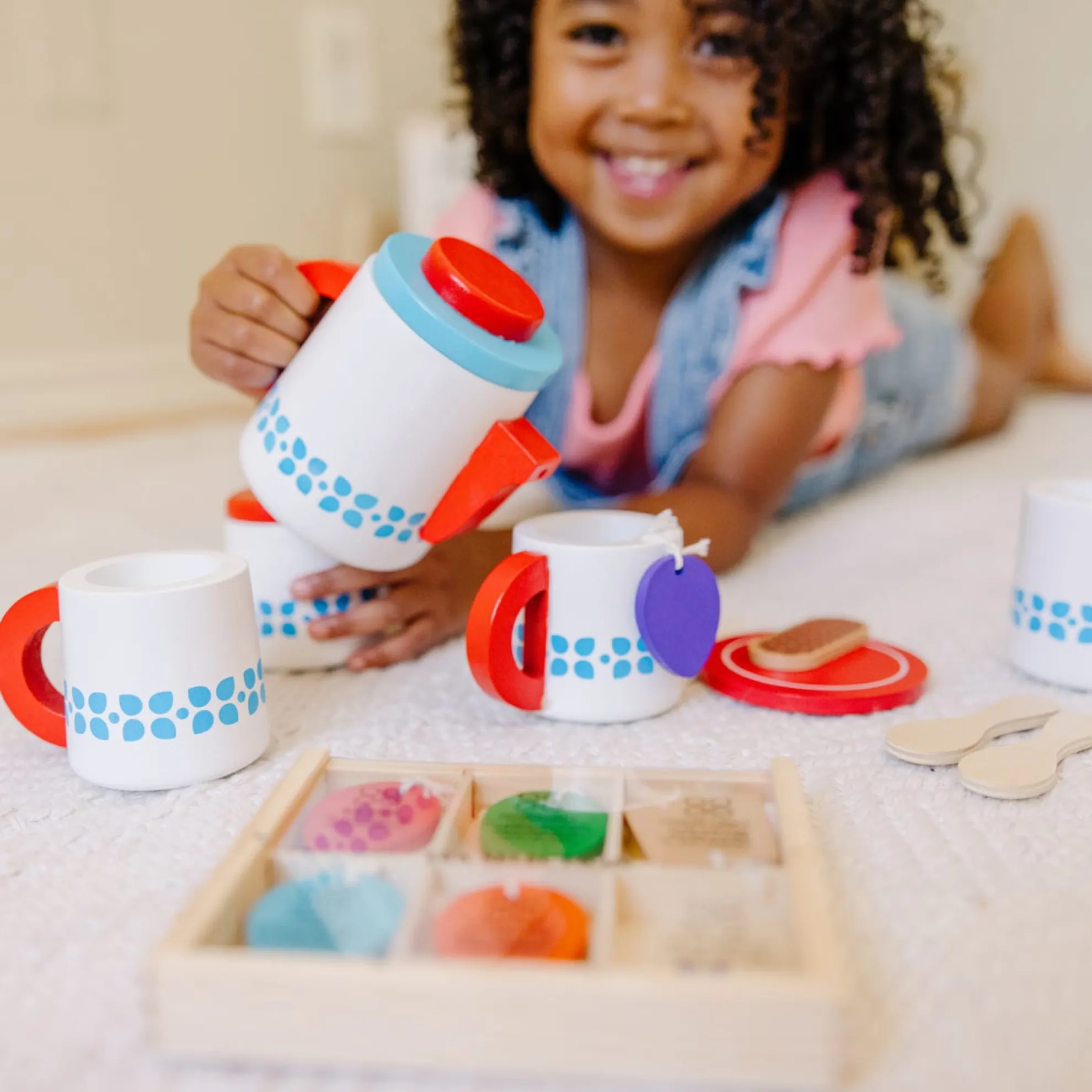 - Brightly colored tags help child to identify different teas
