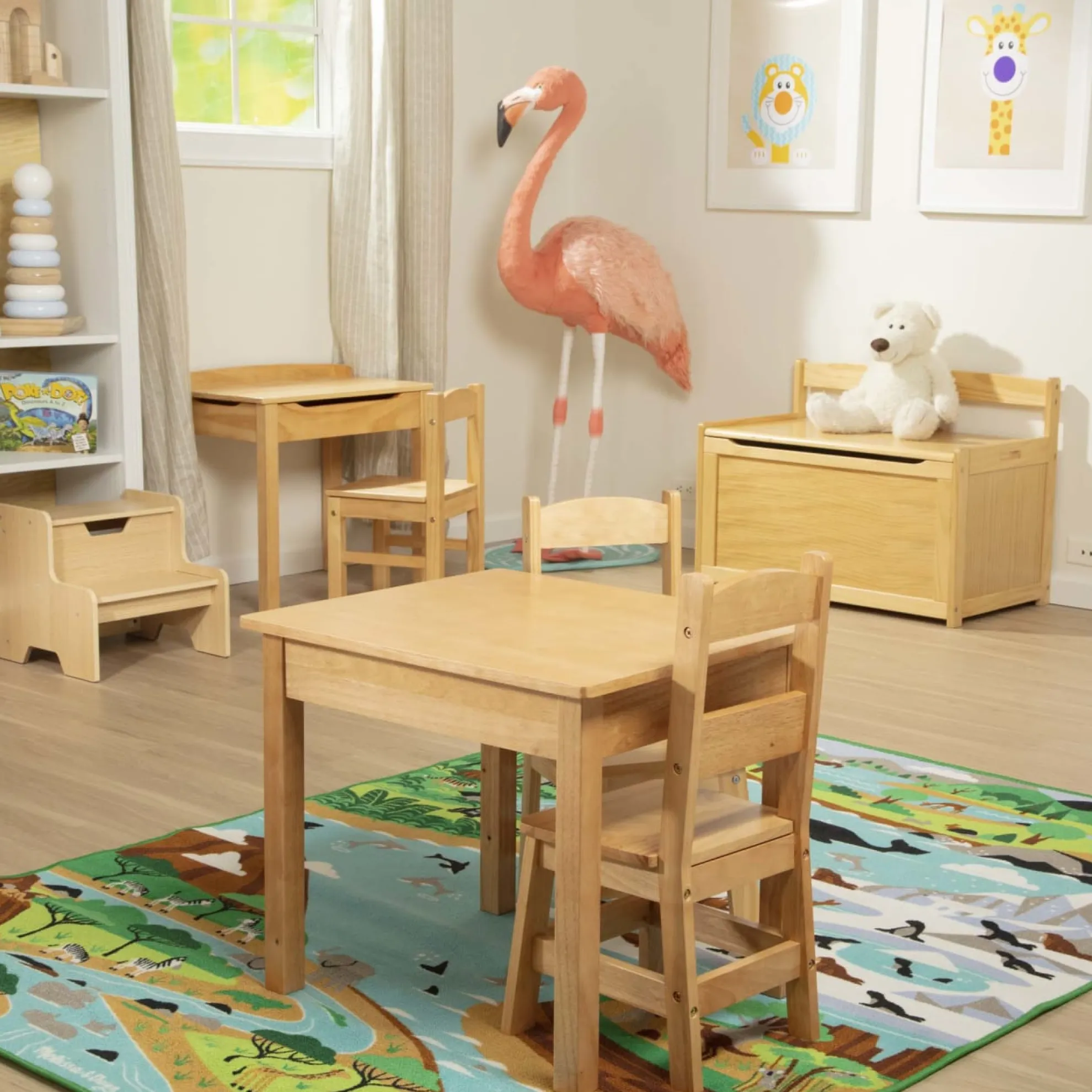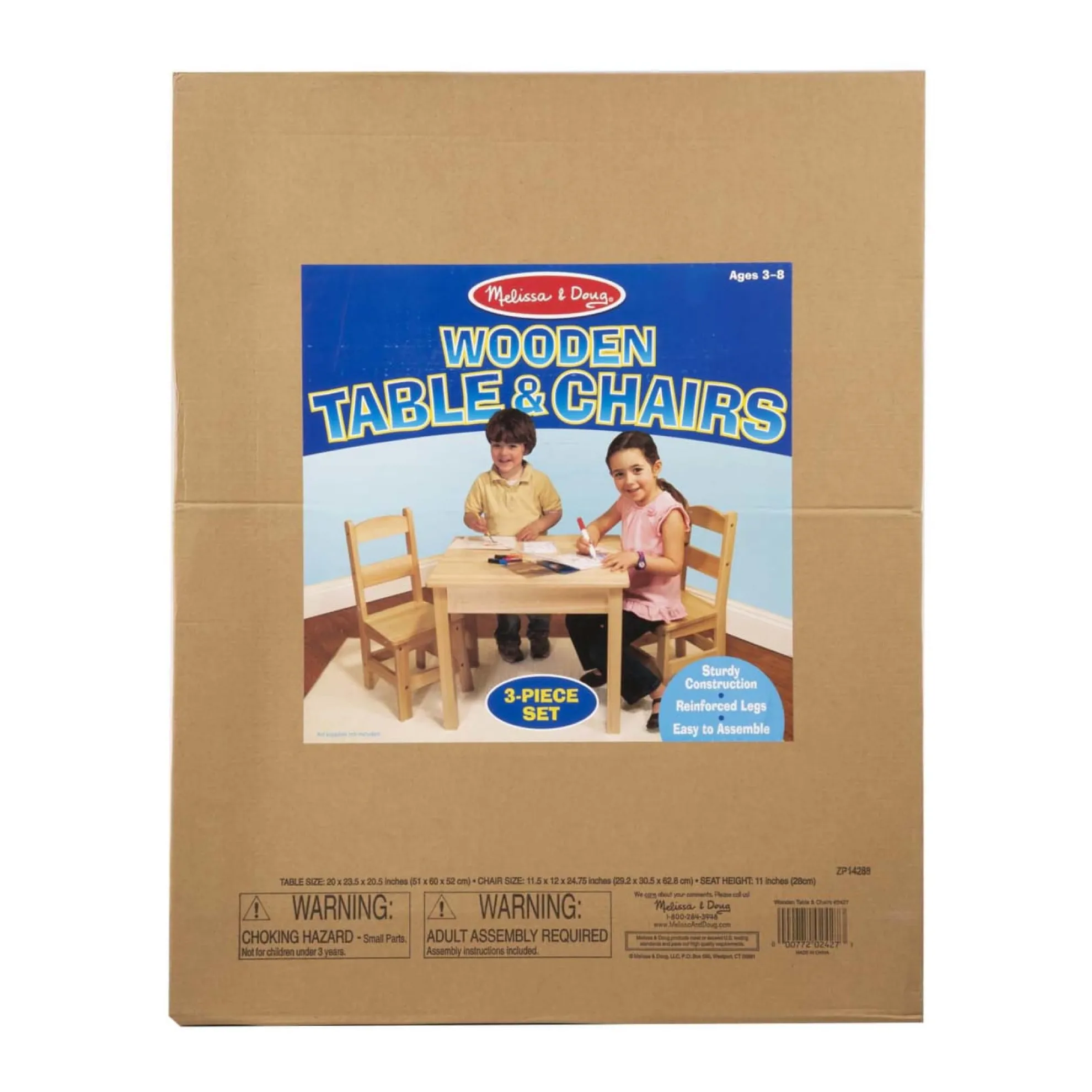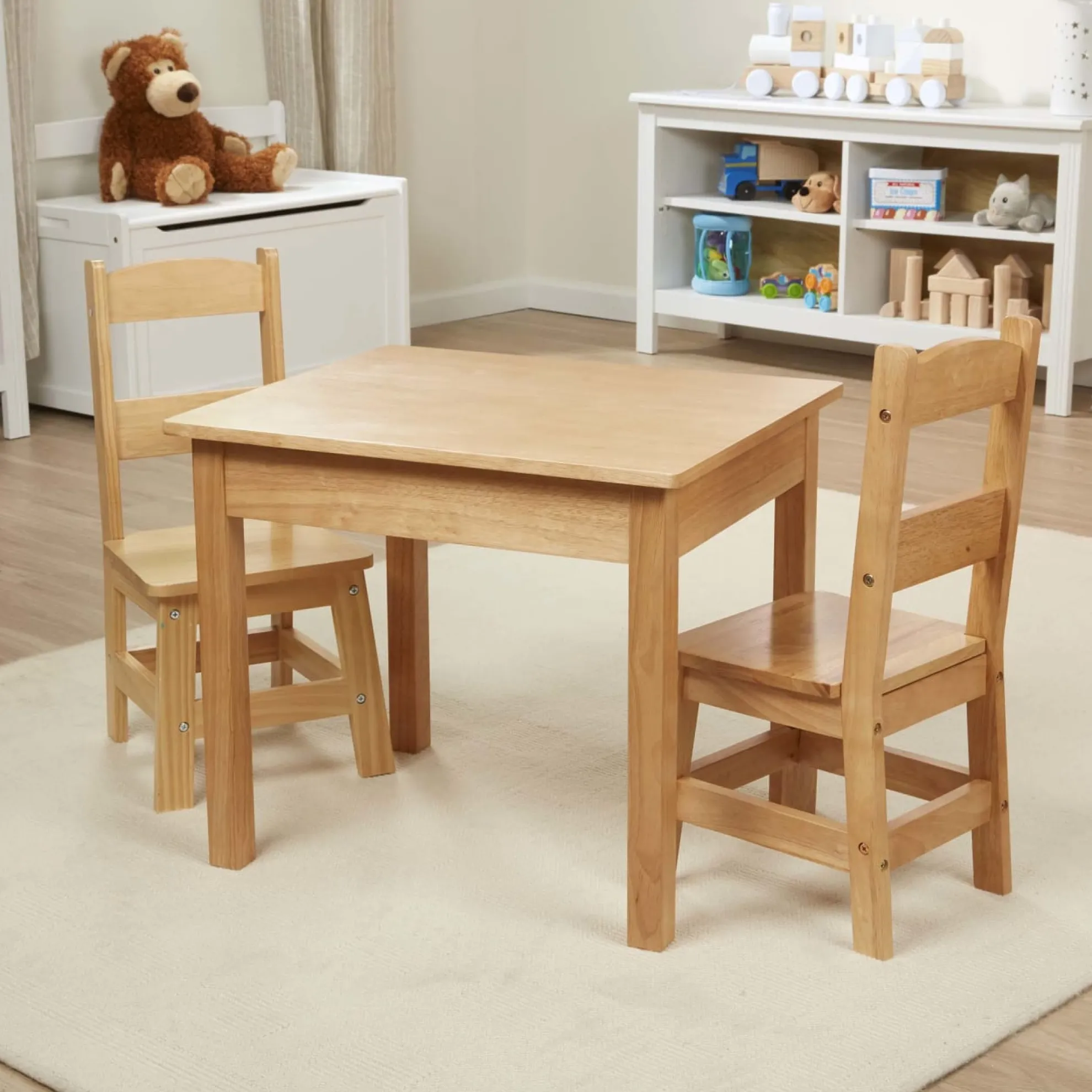Pull one of the two durable chairs up to the child-size table–they’re sized just right for kids, but strong enough to hold grown-ups, too! This sturdy wood table-and-chairs set comes in natural, white, or espresso finish to fit with any home décor, and wipes clean to stay looking crisp and clean. The three wooden pieces are simple to construct with just a Phillips-head screwdriver, and incredibly sturdy once assembled. Top the table with a child’s favorite puzzles or use it for arts and crafts, tea parties, puzzle play, lunch and snacks, and so much more! Two chairs have an 11-in seat height. Assemble with a Phillips-head screwdriver, not included. Chairs maximum load 100 lbs.
