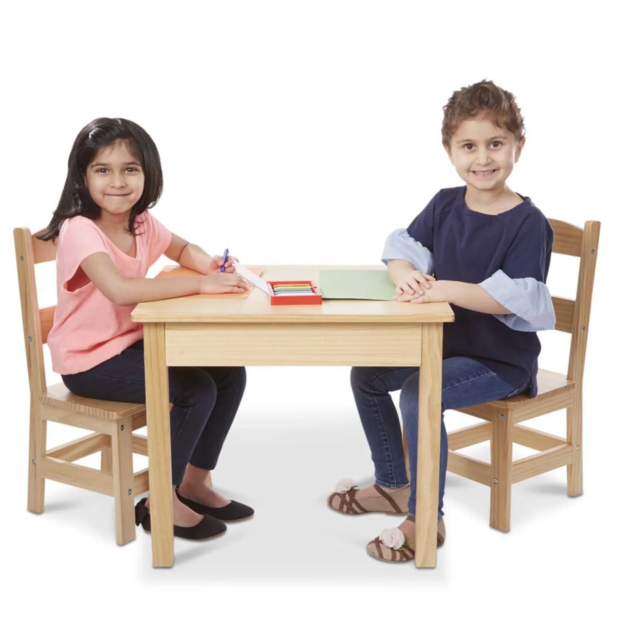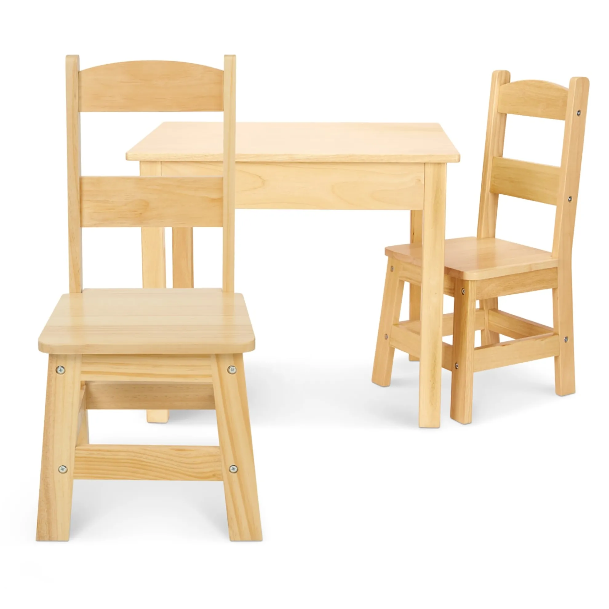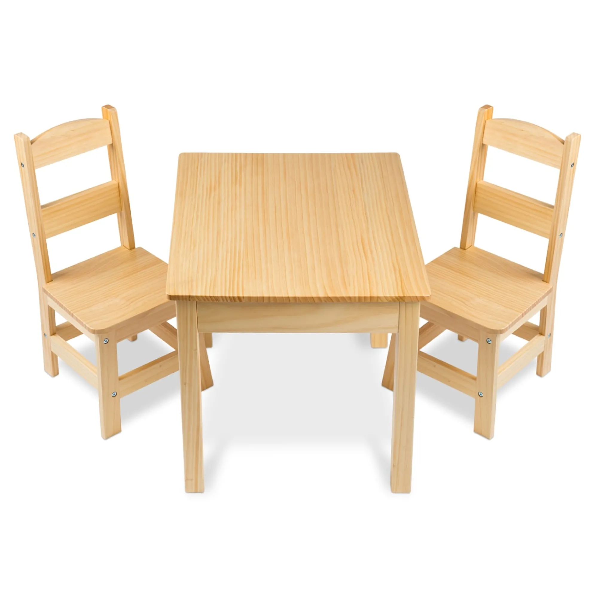 - 3-piece set (table and 2 chairs) gives children a kid-sized space for creativity