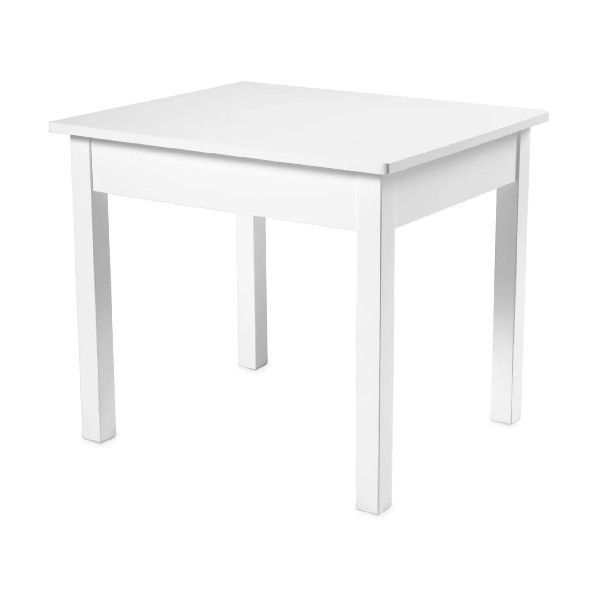 Pull one of the two durable chairs up to the child-size table–they’re sized just right for kids and hold up to 100 pounds! This sturdy wood table-and-chairs set comes in natural, white, or espresso finish to fit with any home decor, and wipes clean to stay looking crisp and clean. The three wooden pieces are simple to construct with just a Phillips-head screwdriver, and incredibly sturdy once assembled. Top the table with achild’s favorite puzzles or use it for arts and crafts, tea parties, puzzle play, lunch and snacks, and so much more! Two chairs have an 11-in seat height. Assemble with a Phillips-head screwdriver, not included.