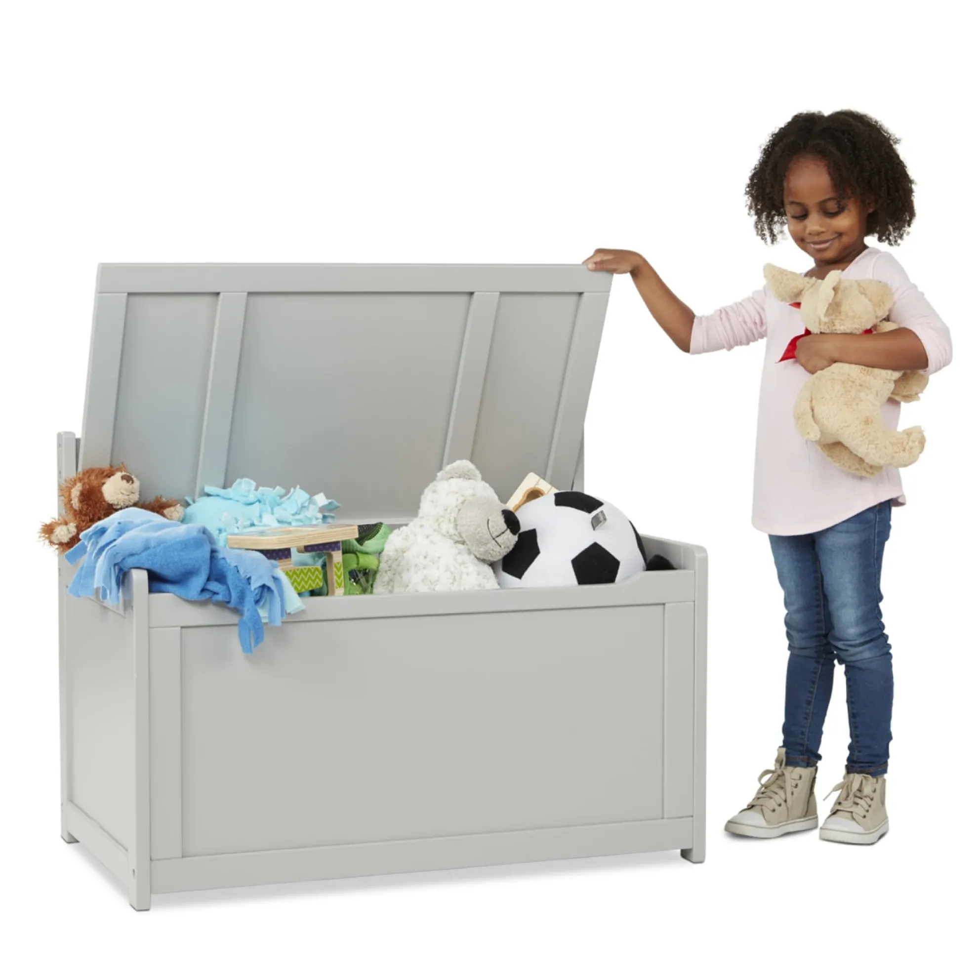 Kids will love having a handy place to store all their toys, and adults will love the classic styling and durability of this wooden toy chest! Available in honey, white, espresso, and gray finish that’s easy to wipe clean and fits with any home décor, the toy chest features 8.25 cubic feet of storage space and a safety-hinged lid. Easy to assemble with a Phillips head screwdriver, not included.